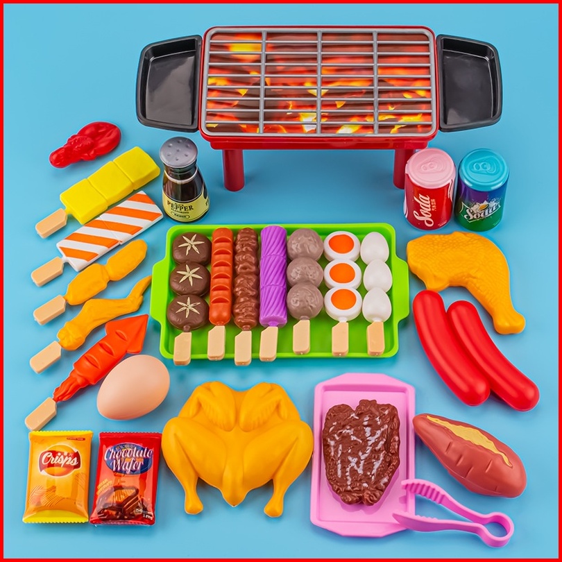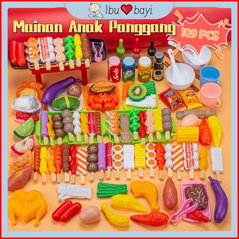 109 Pcs Promo Mainan Anak Panggang Masak Masakan Sate Sosis Bakso Bakar Dapur Cooking Set Mainan Anak Perempuan Laki
