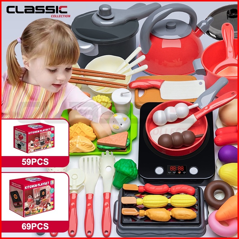 Mainan Masak Masakan 69pcs Set Mainan Dapur Anak Bermain Rumah Mainan Cooking Set Mainan Anak Perempuan Mini Kitchen Toy