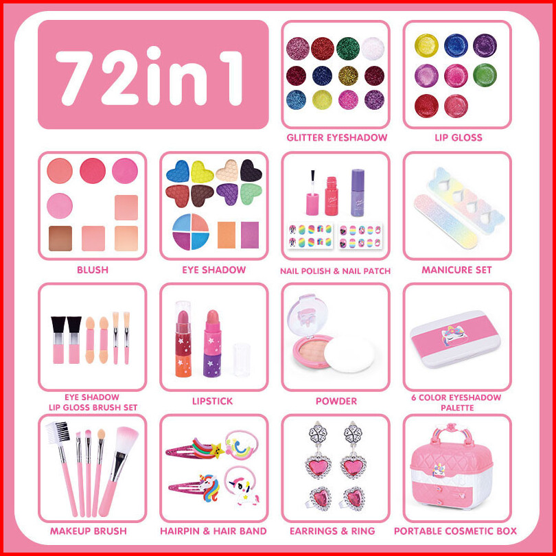 Ready72pcs Children Pretend Plays Make Up Kit Set Mainan Make Up Anak Dengan Fungsi Asli - Kado Anak Cewek - Bahan Alami