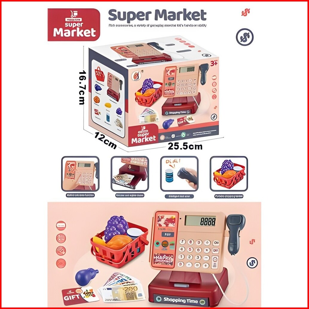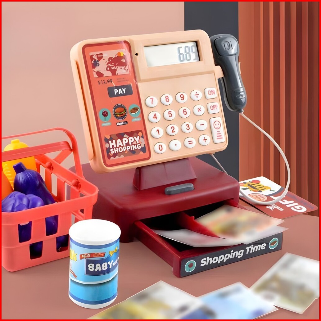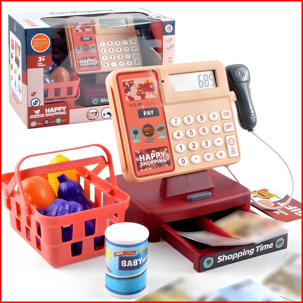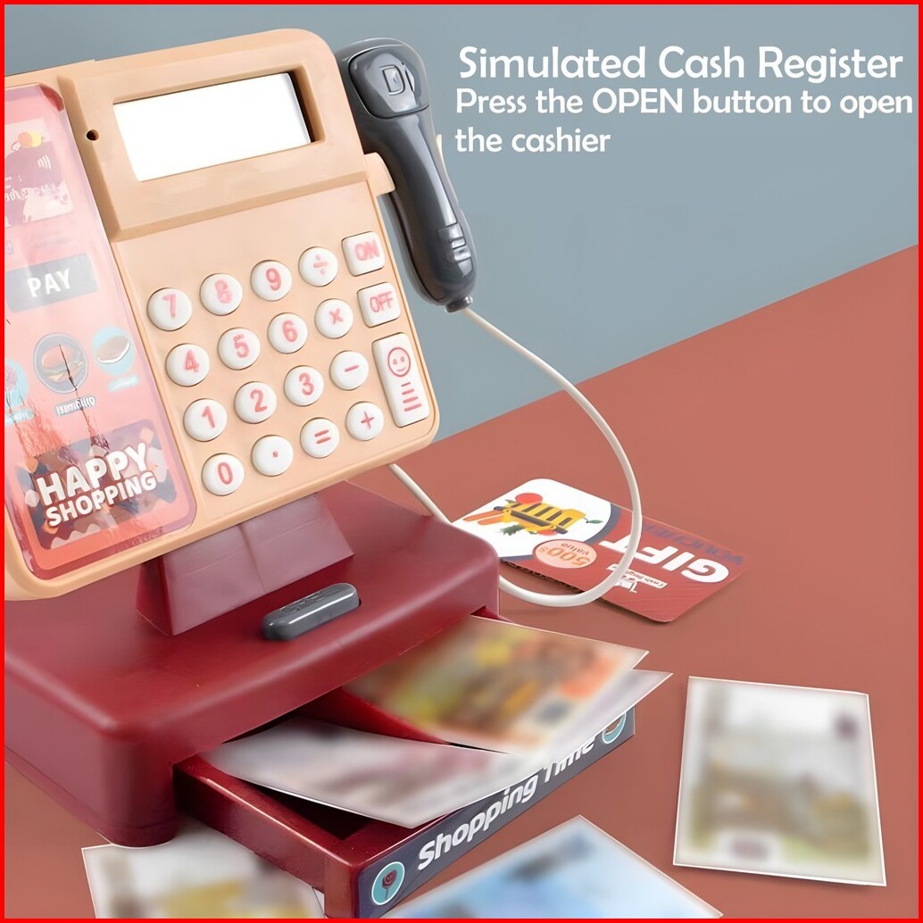 Toy Studio Mainan Anak Happy Shopping Register Cashier Machine Mesin Kasir Keluar Suara Lampu