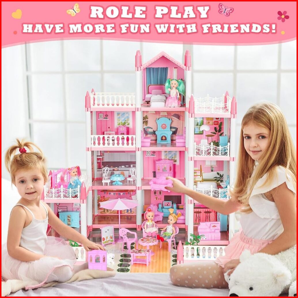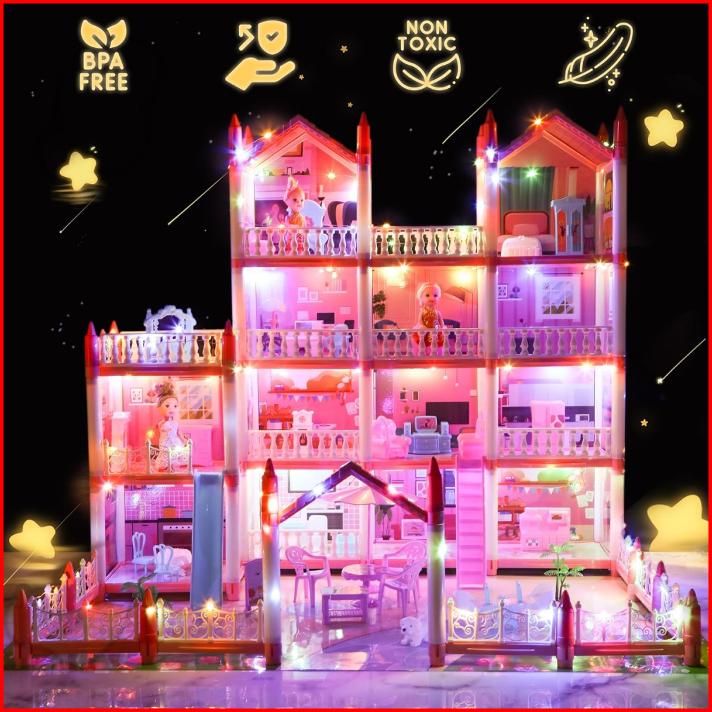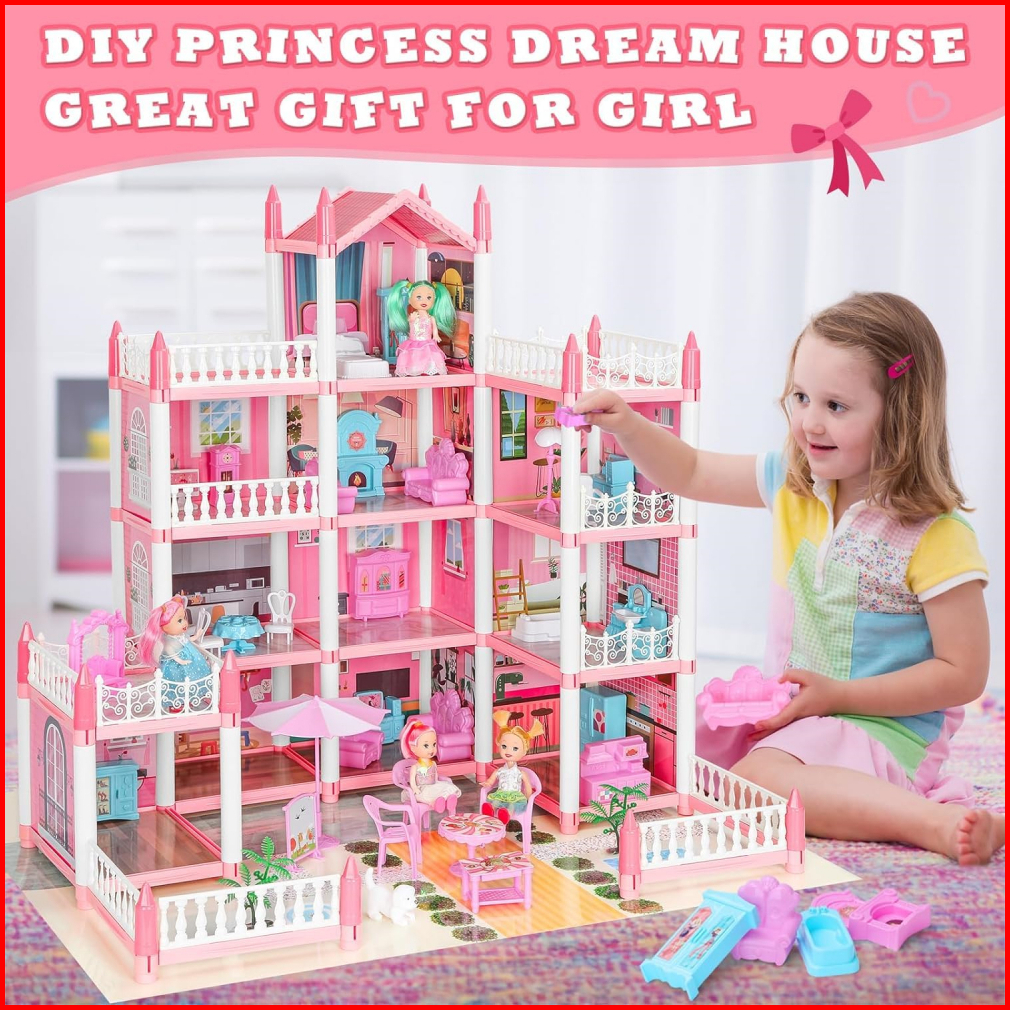 Mainan Anak Perempuan Rumah Boneka Besar 3d Princess Big Pink Villa Diy Doll House