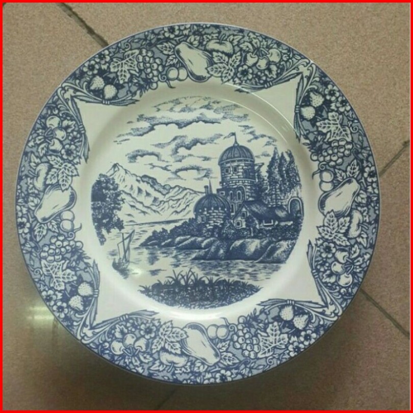 Piring Jadul Blue Lake Wall Plate Decor Sango Biru Putih Tableware