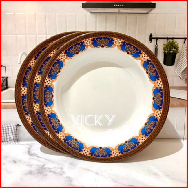 12 Pcs Piring Makan Estetik Motif Batik Original Sni Ukuran Diameter 23 Cm