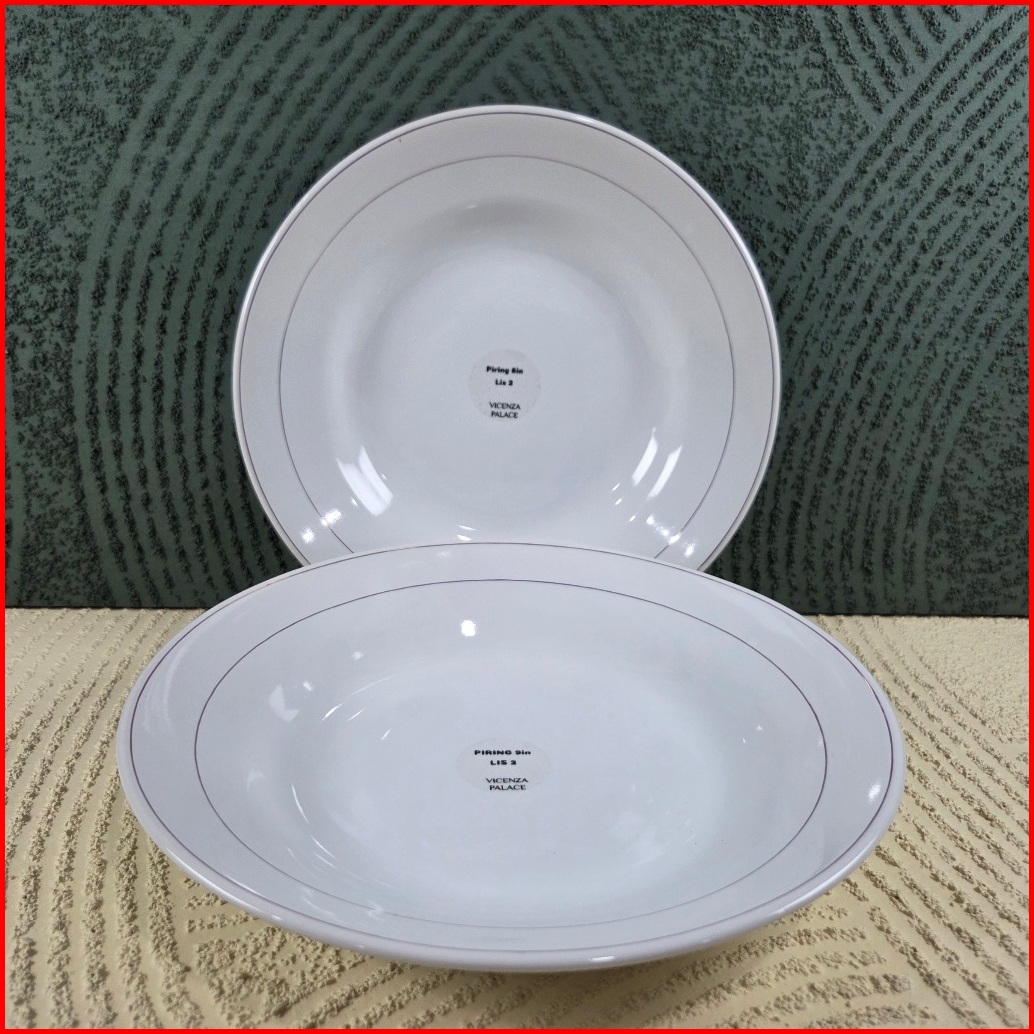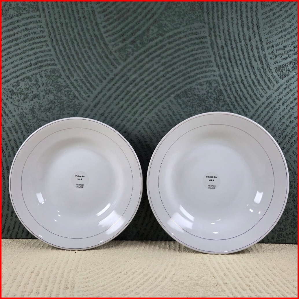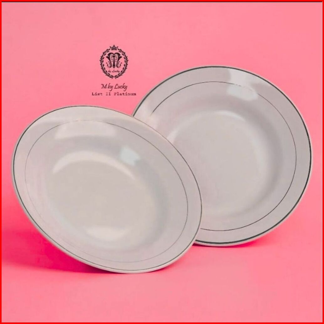 Set Piring Makan - Piring Keramik Putih Lis Silver Piring Catering Prasmanan Lucky 8in 21cm