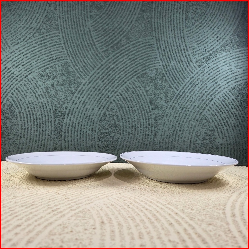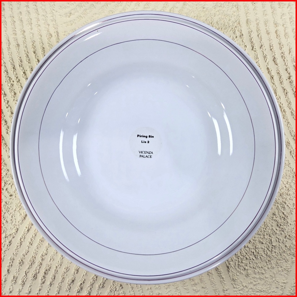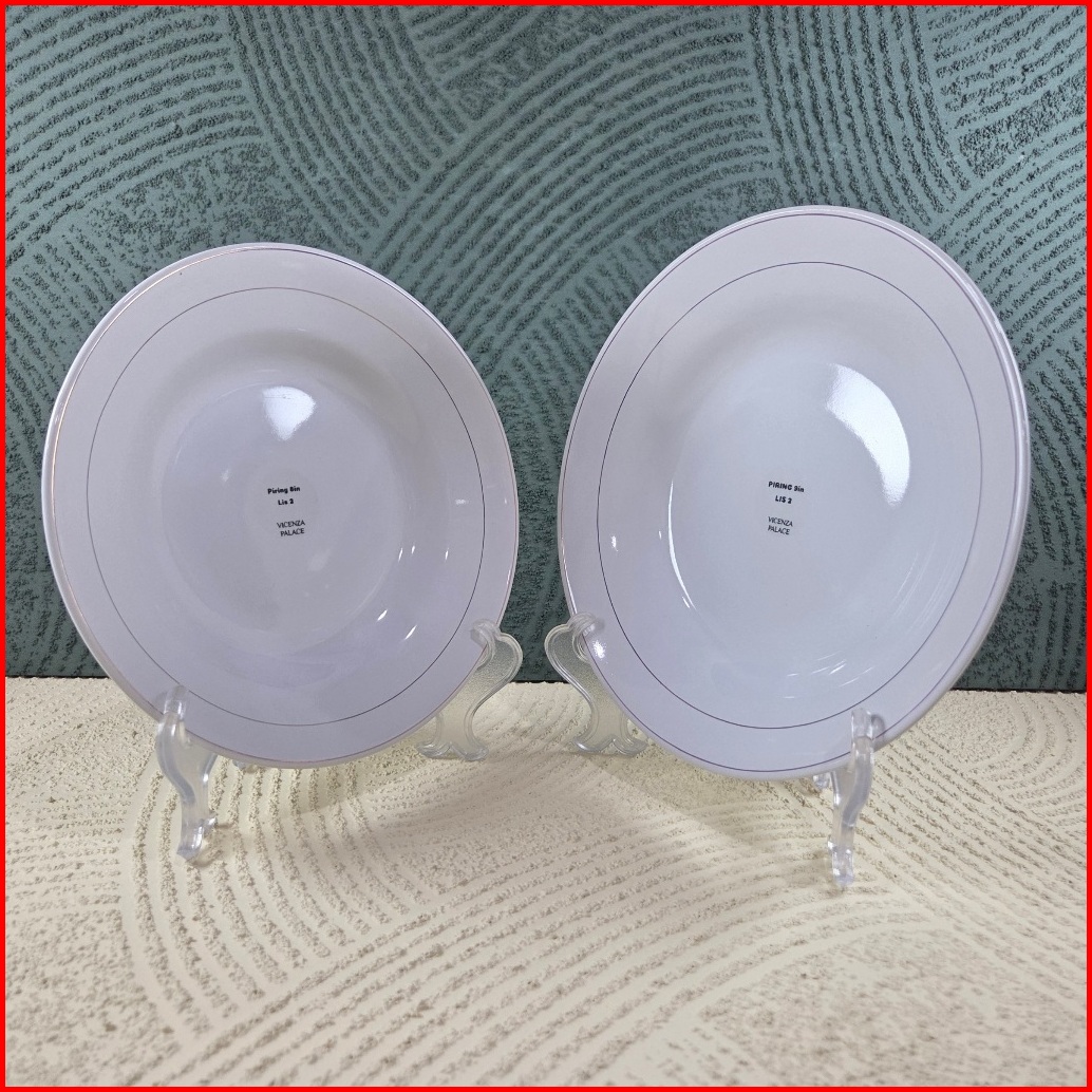 Set Piring Makan - Piring Keramik Putih Lis Silver Piring Catering Prasmanan Lucky 8in 21cm