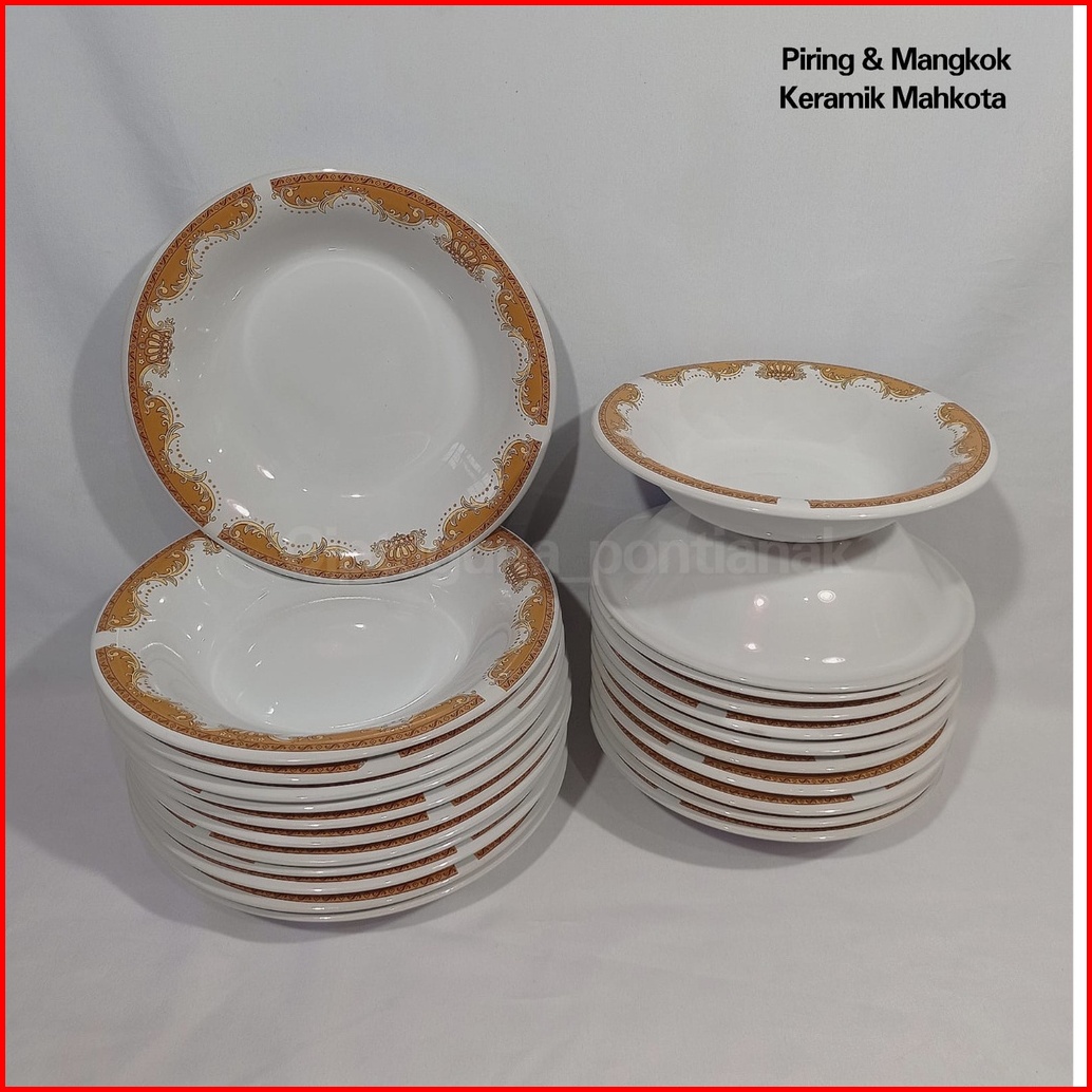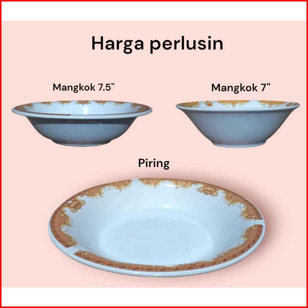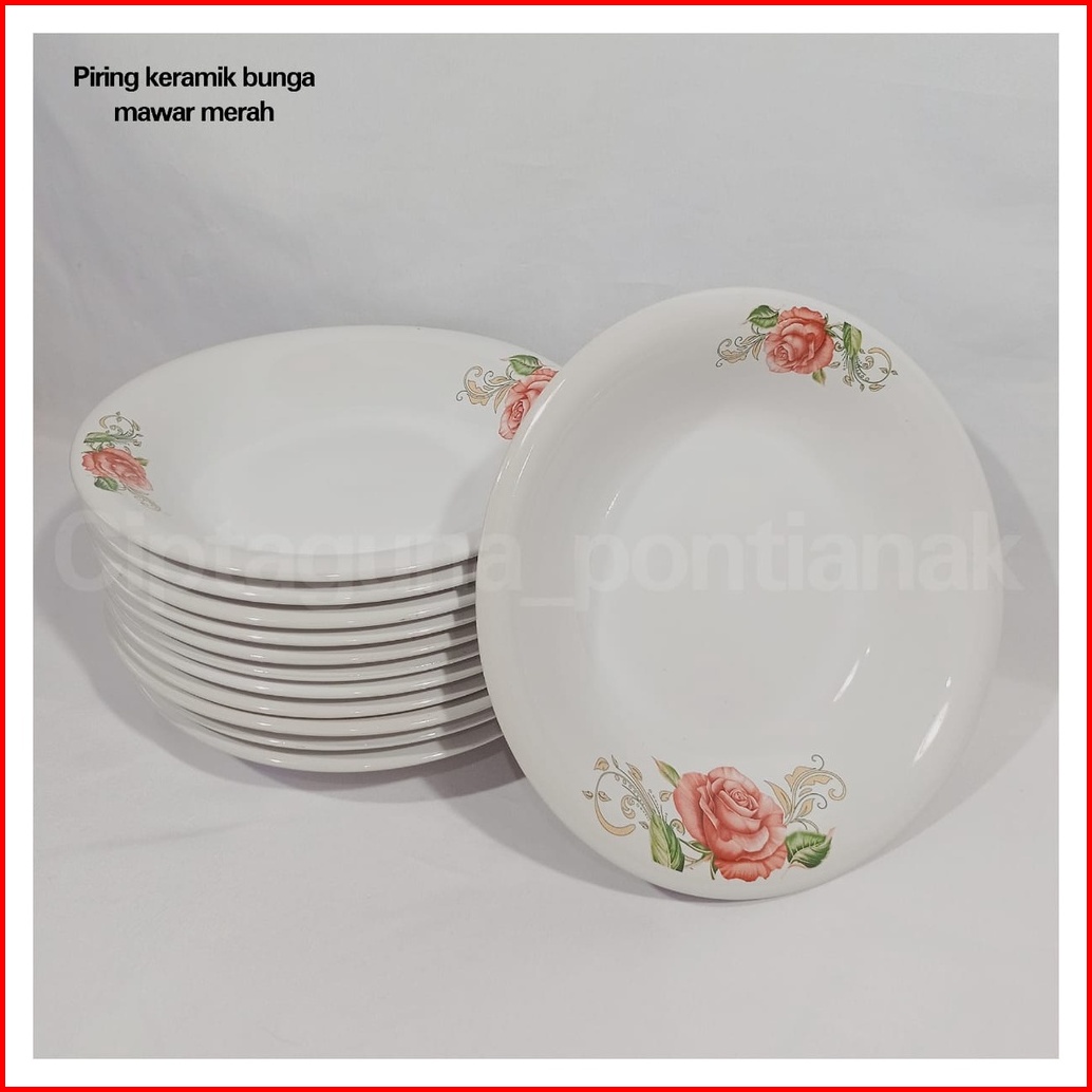 Piring Mangkok Keramik Mahkota Mawar Merah - Murah Harga Perlusin