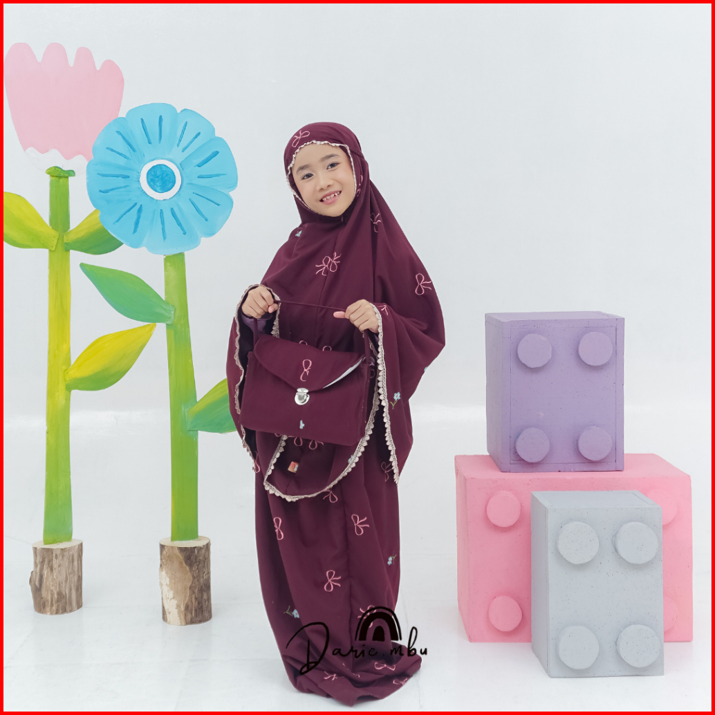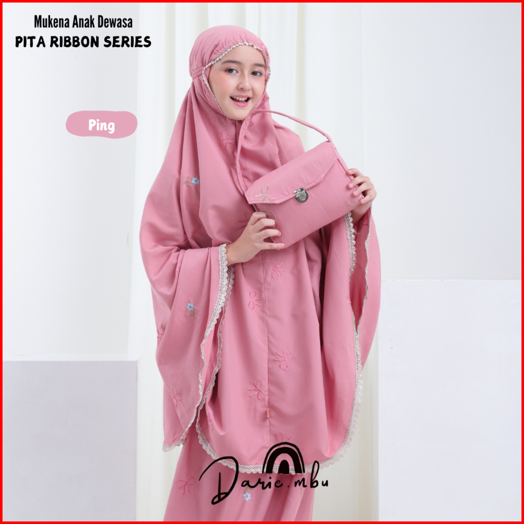 Mukena Anak Dan Dewasa Pita Ribbon Bordir Katun Premium