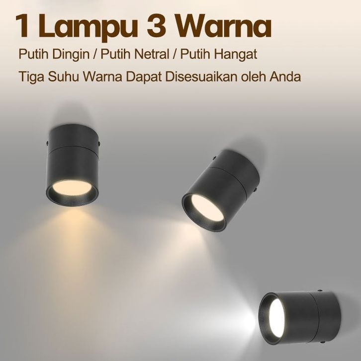 Lampu LED Sorot Foldable Downlight 3 Warna Spotlight Adjustable Led Plafon Minimalis Dekorasi Rumah