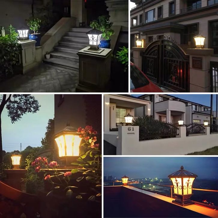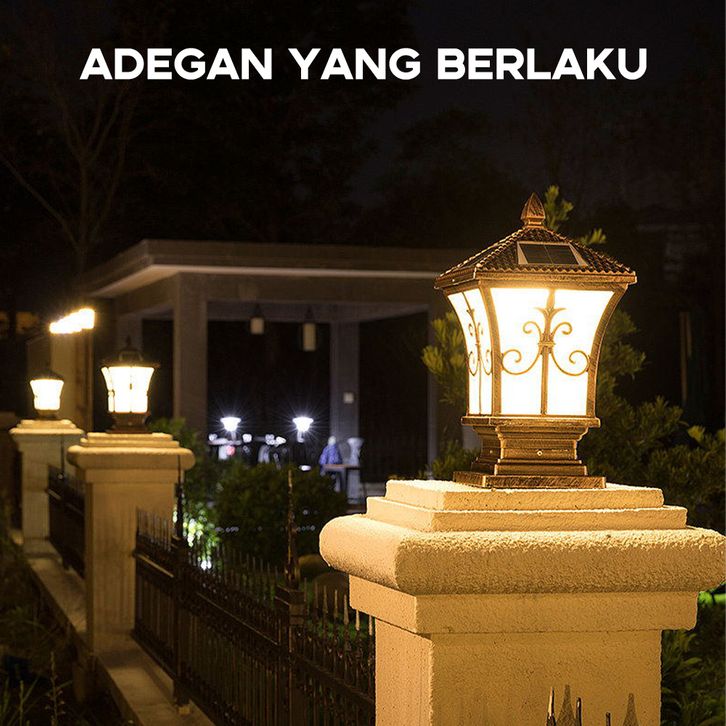 Lampu Taman Tenaga Matahari 3Warna Outdoor Lampu Pilar Multifungsi Lampu Pagar Tenaga Surya 10W