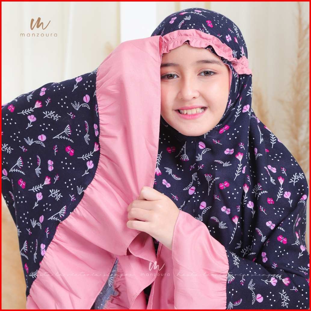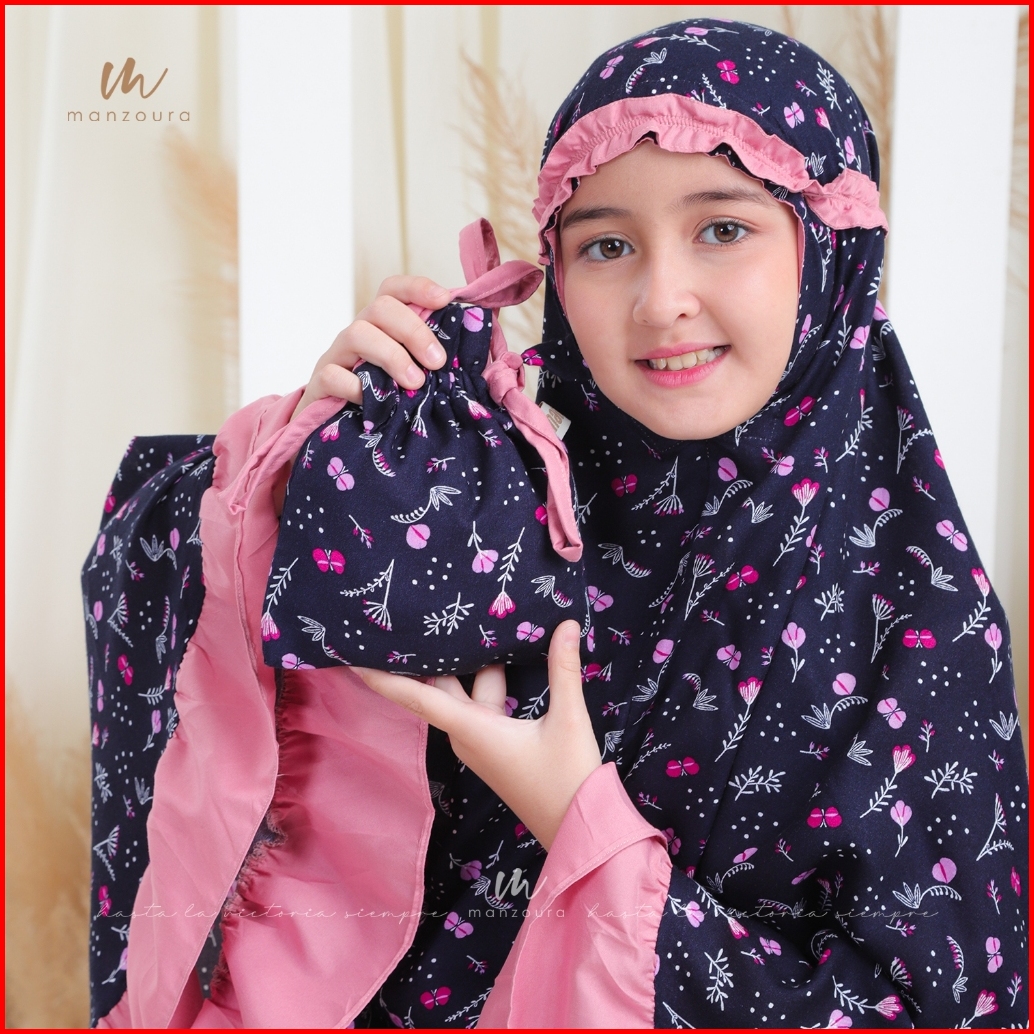 Manzoura - Mukena Anak Tanggung Premium Rayon Katun Motif Mukenah Anak Perempuan Usia 6 -13 Tahun