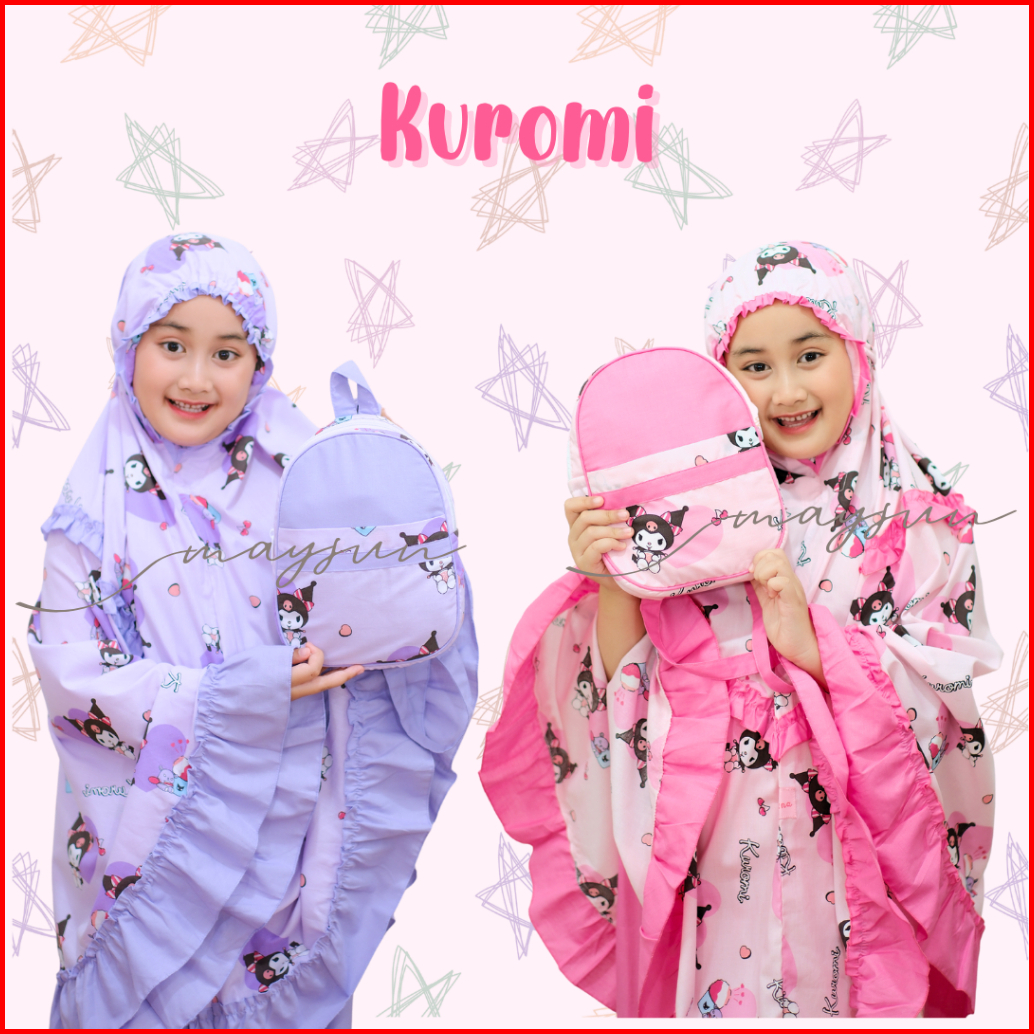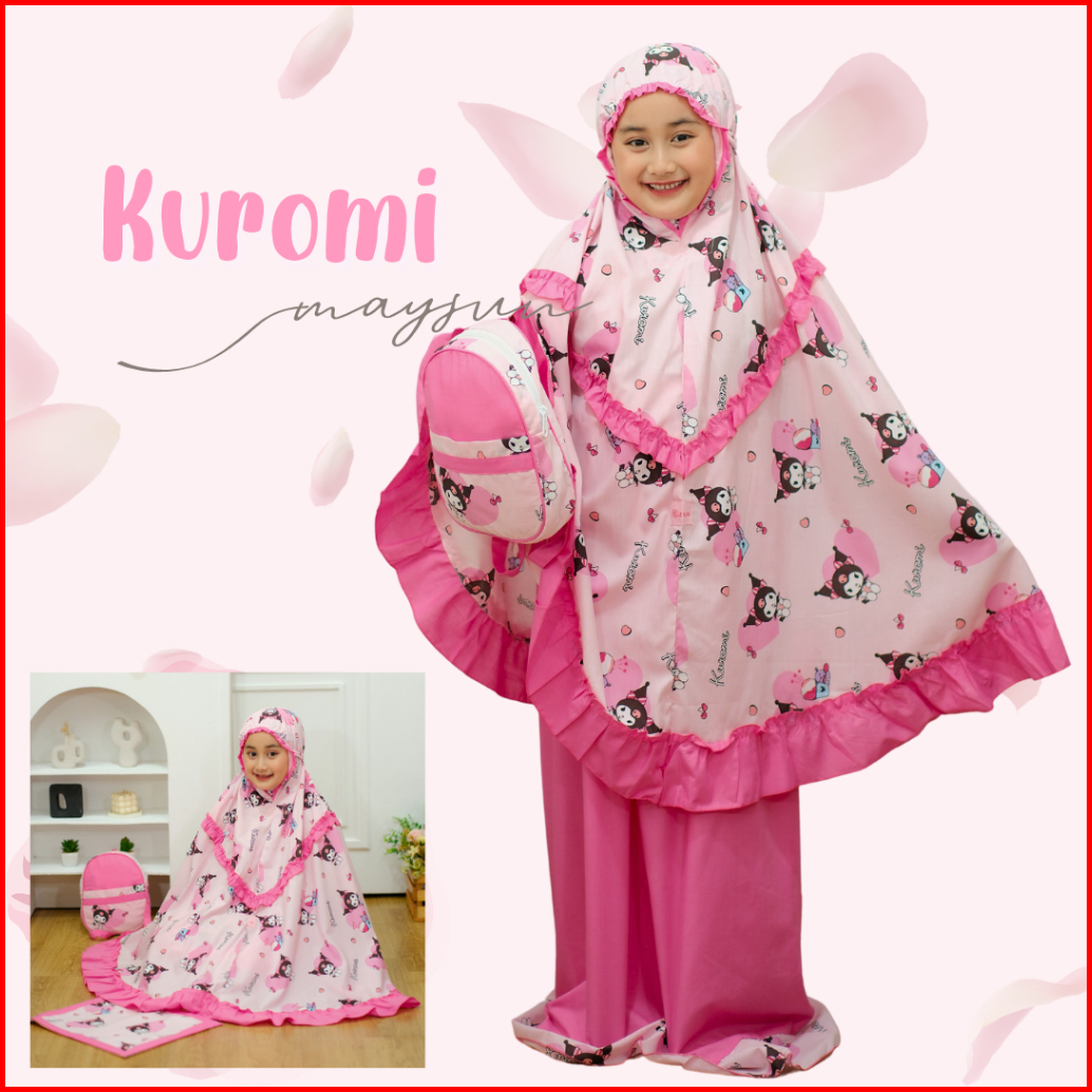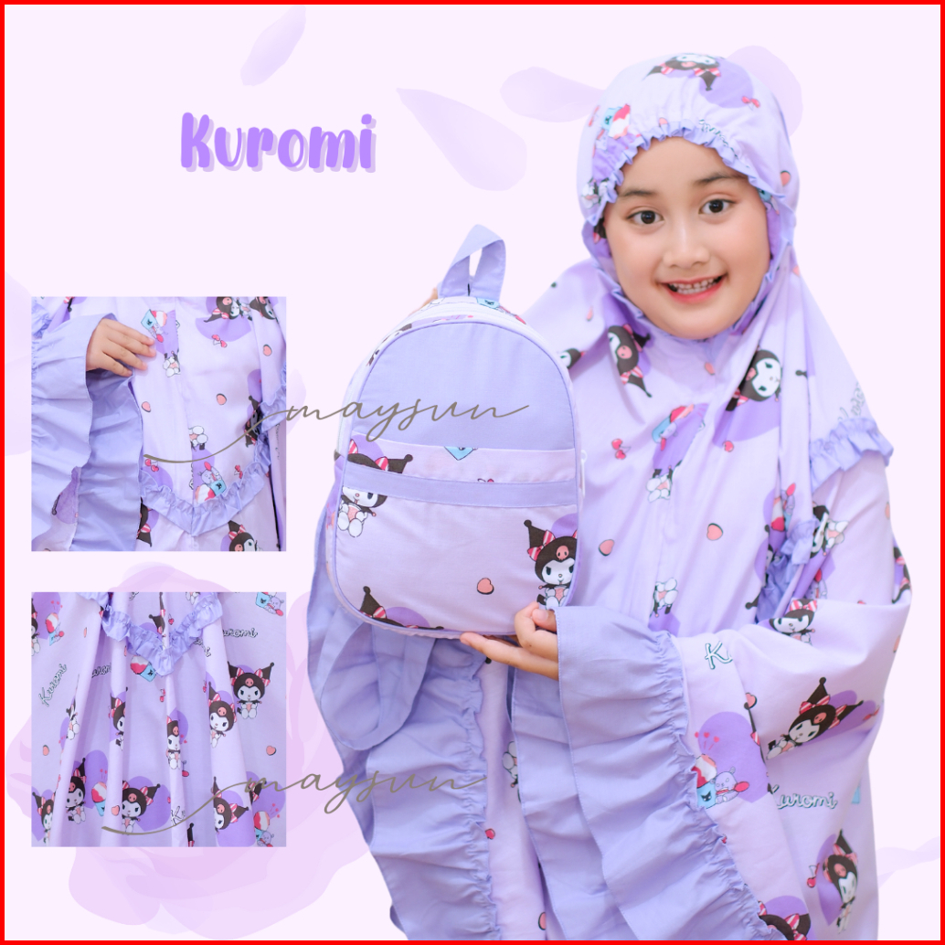Mukena Anak Karakter 3in1 Kuromi Lilac Pink Free Tas Ransel Dan Sajadah Muka