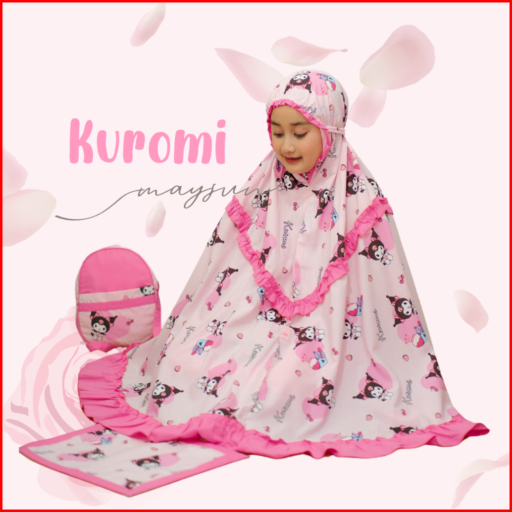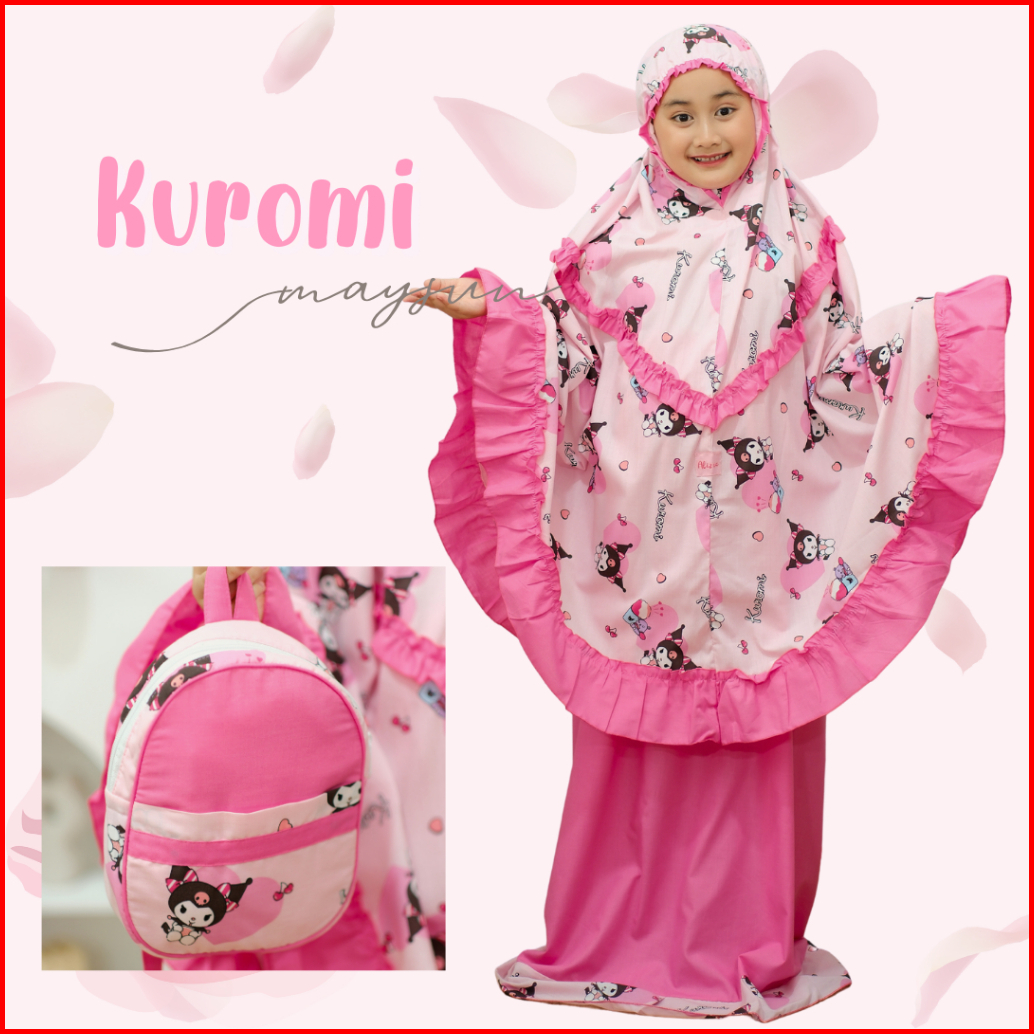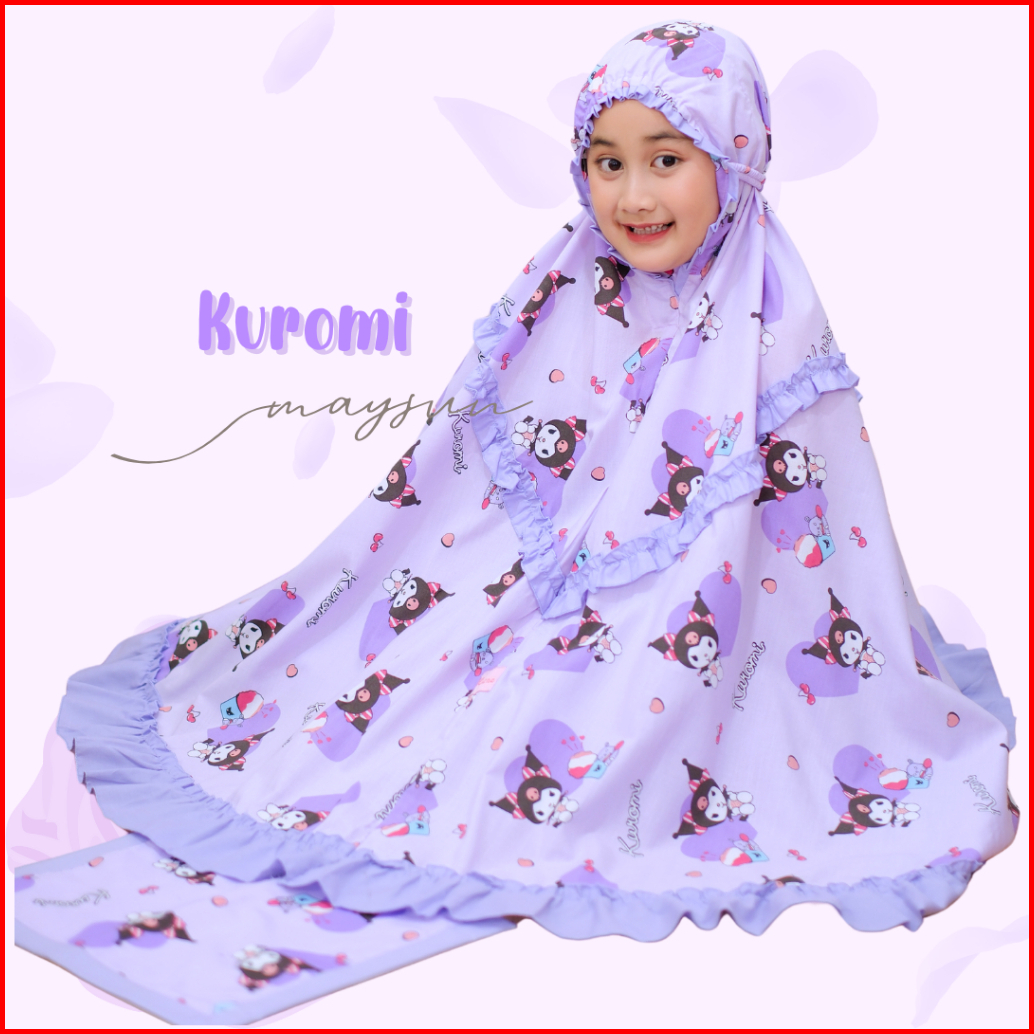 Mukena Anak Karakter 3in1 Kuromi Lilac Pink Free Tas Ransel Dan Sajadah Muka