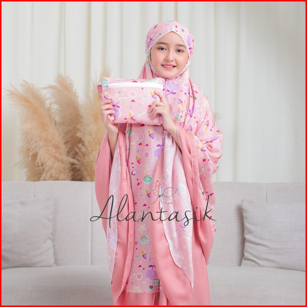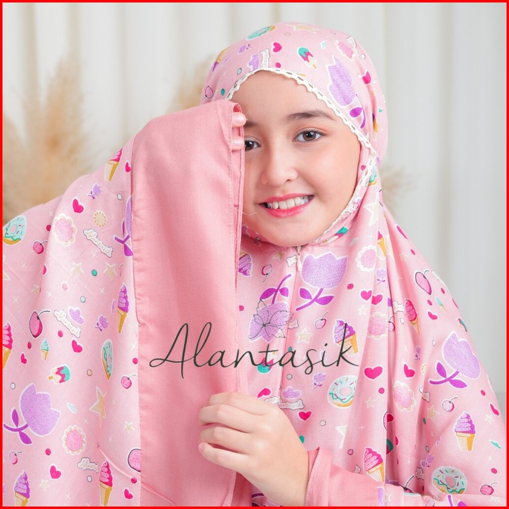 Mukena Anak Amena Tanggung Motif Eskrim 2 In 1 Sleting Dagu Remaja Tanggung Kisaran 6-14 Tahun