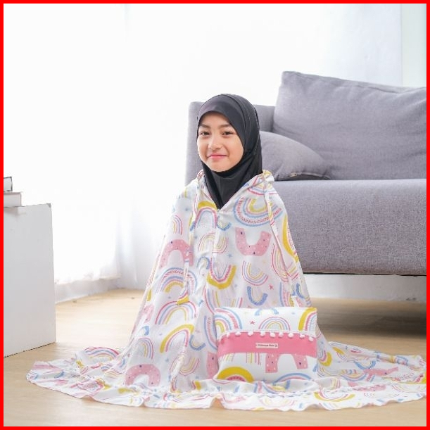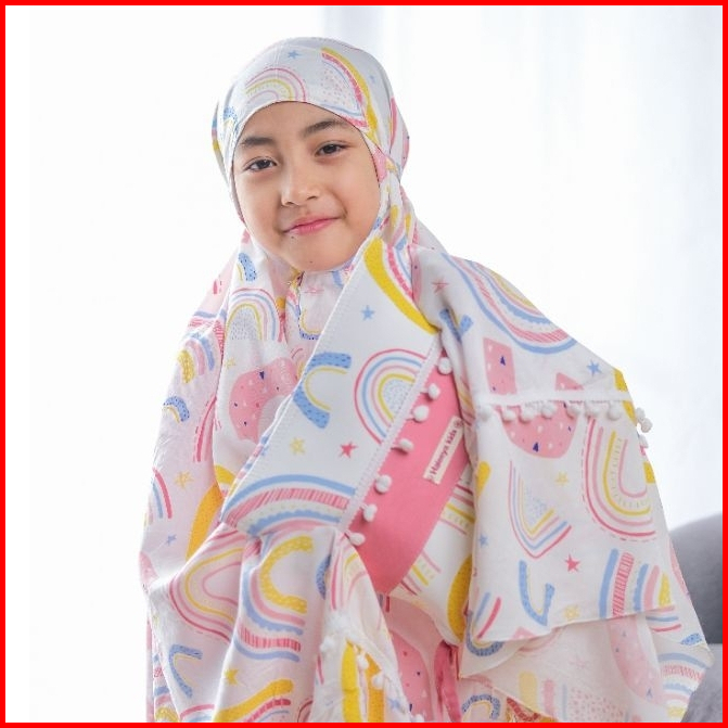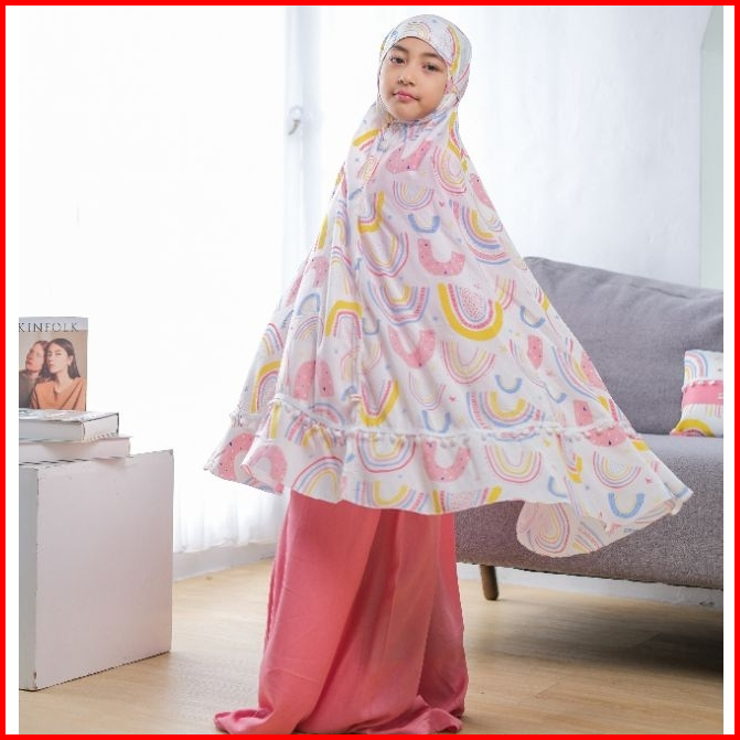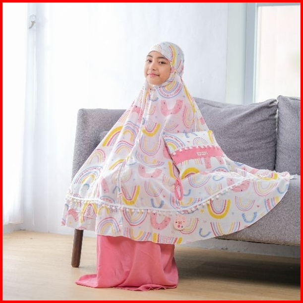 Haleeya - Mukena Anak Perempuan Remaja 3-13th Resleting 2in1 Katun Rayon Nyaman Lembut Ademmotif Rainbow