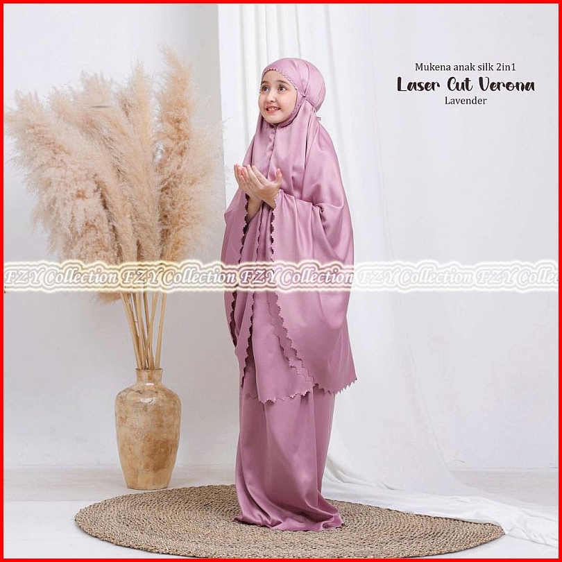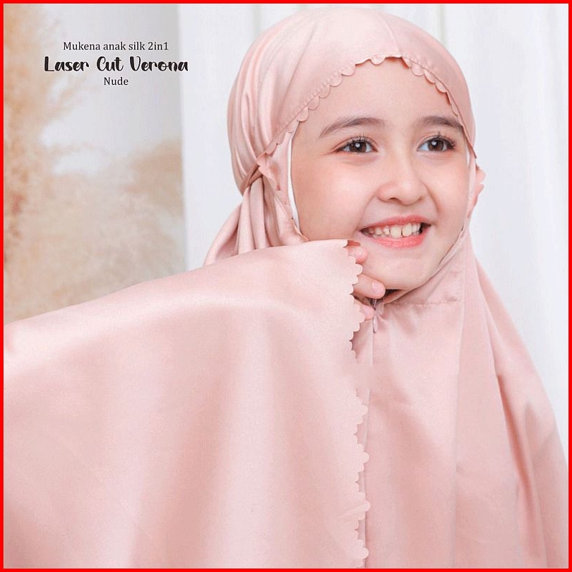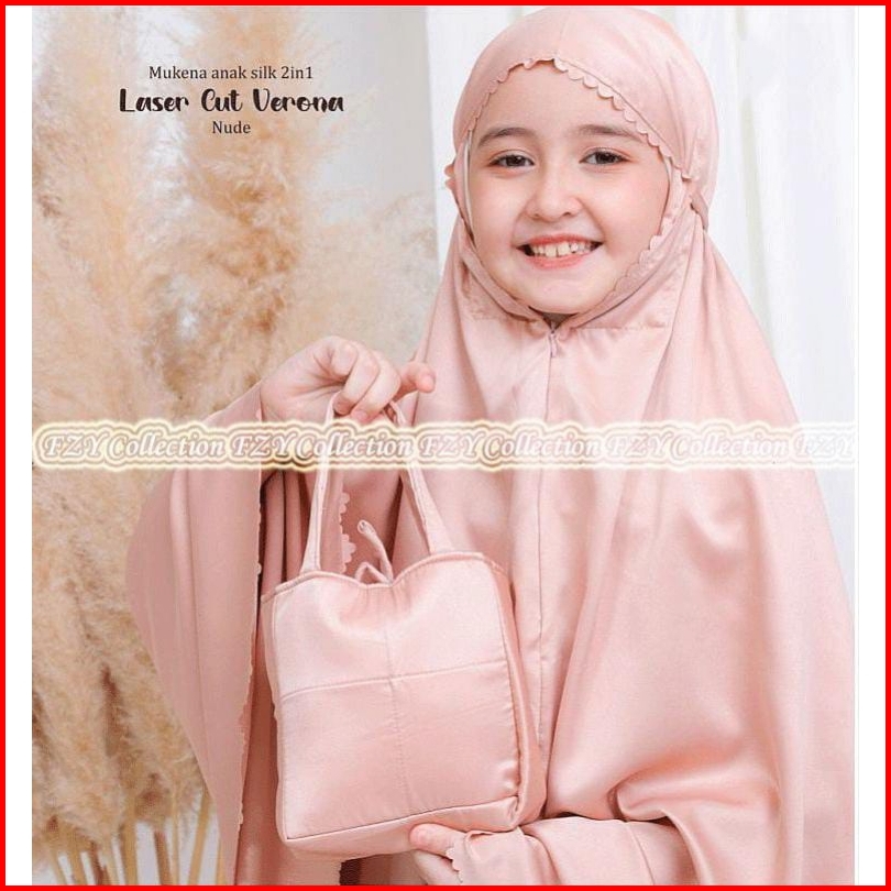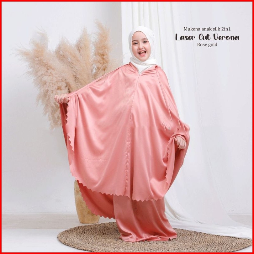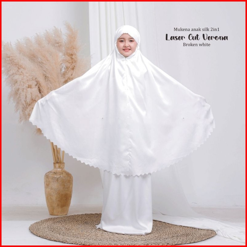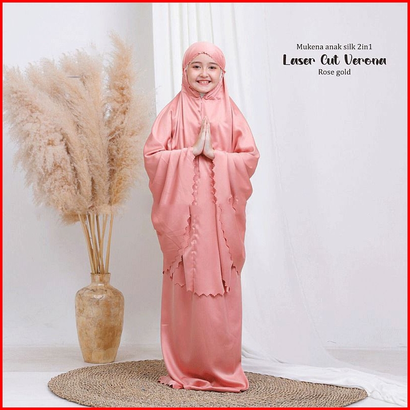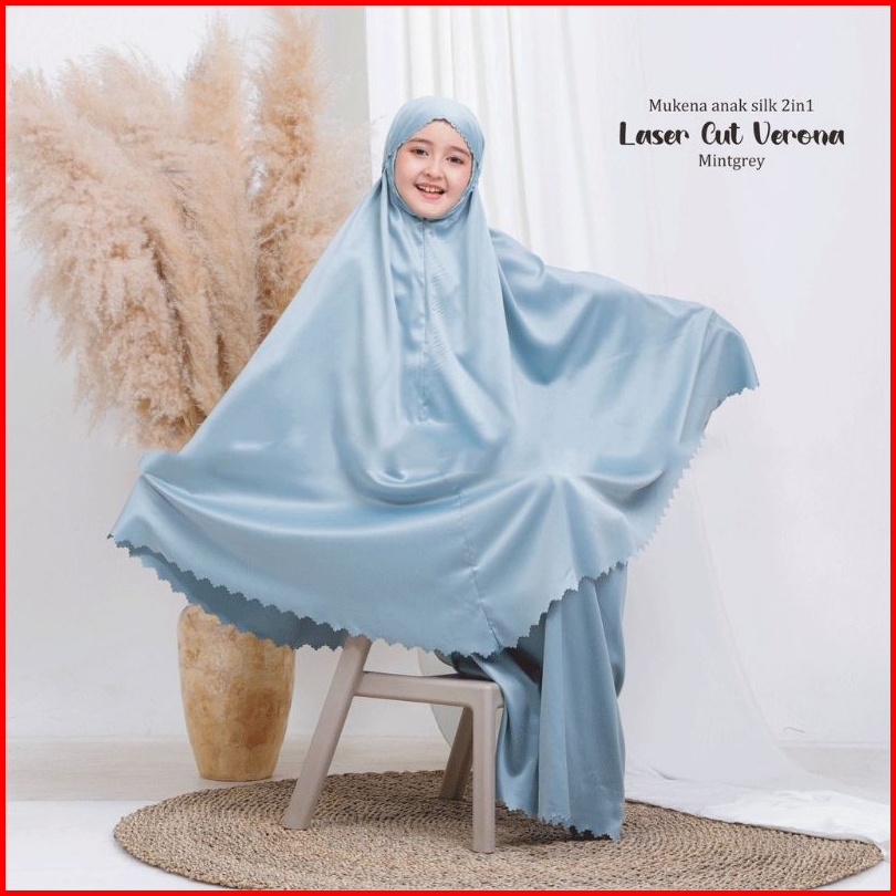 Mukena Terbaru 2025 - Mukena Anak Umur 8-13 Tahun 2in1 Laser Cut Satin Silk Premium - Mukena Anak - Mukenah Anak - Muken