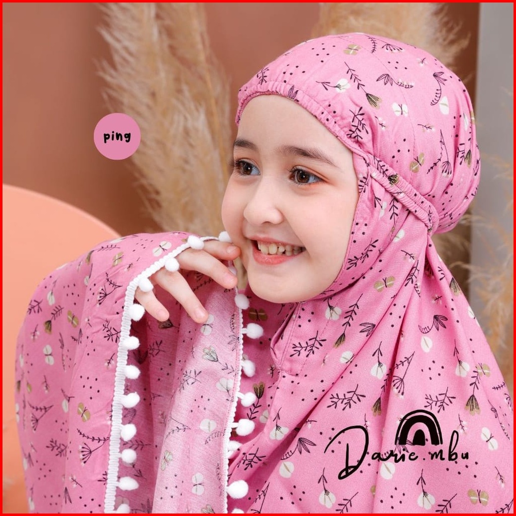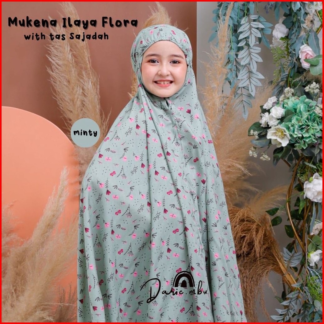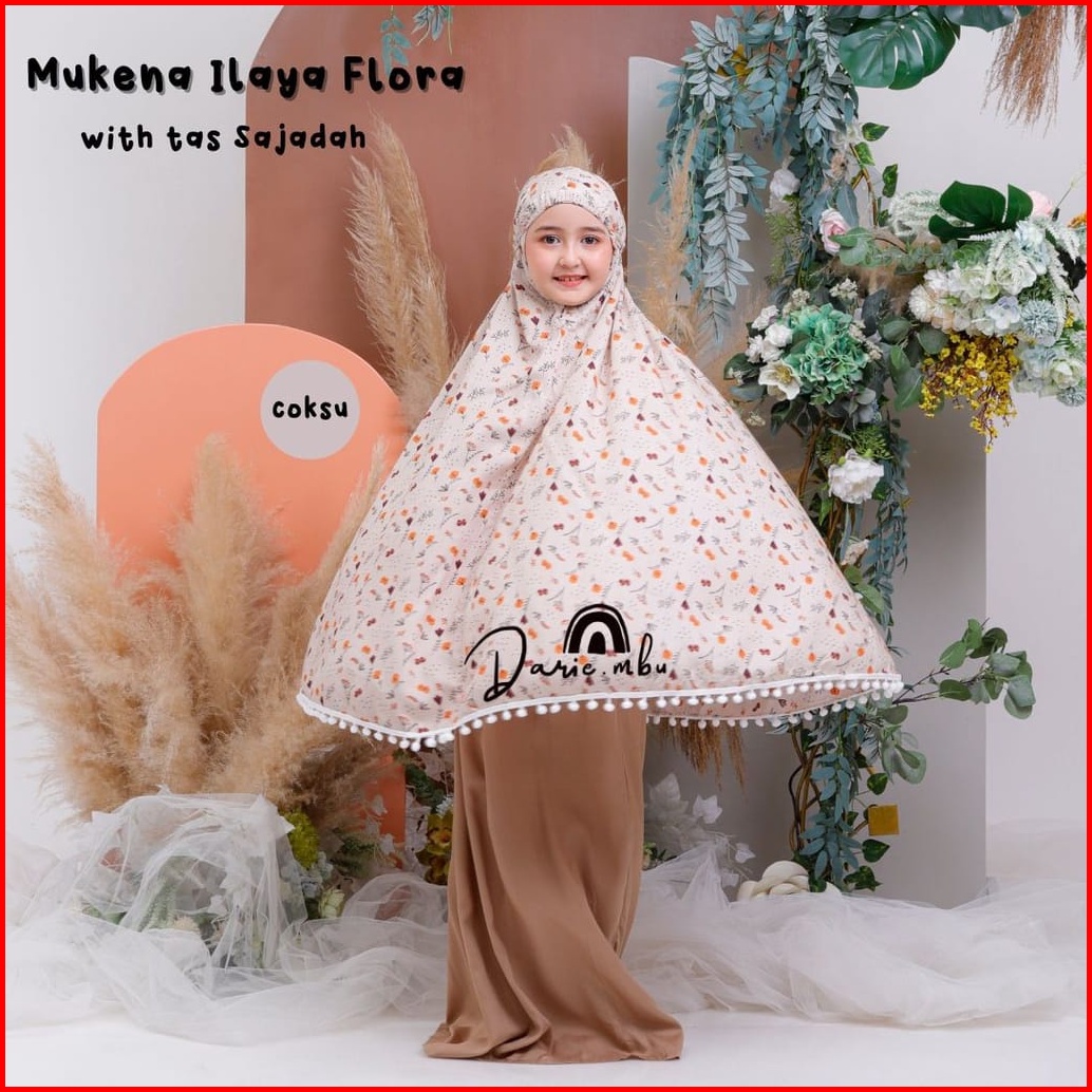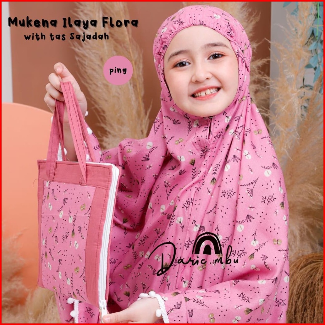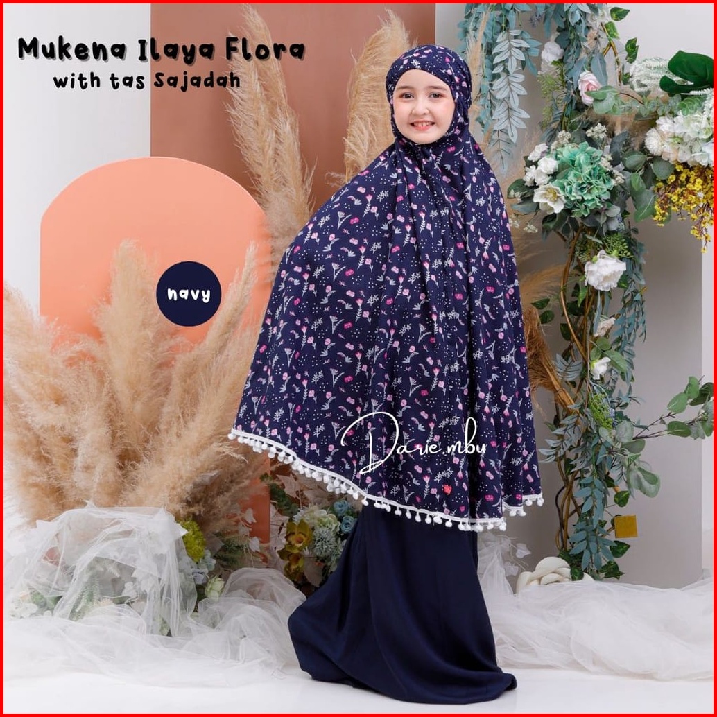 Mukena Anak Tanggung Ilaya Flora Rayon Tas Jadi Sajadah Renda Pom Pom Mukena Anak Perempuan