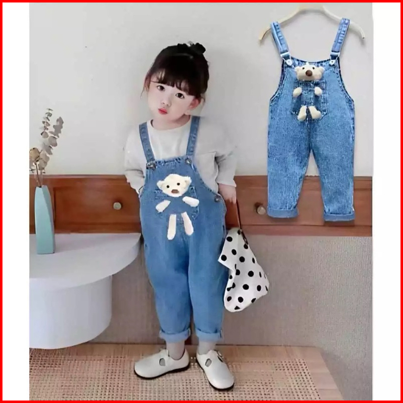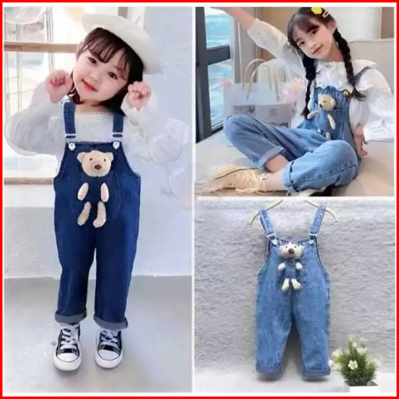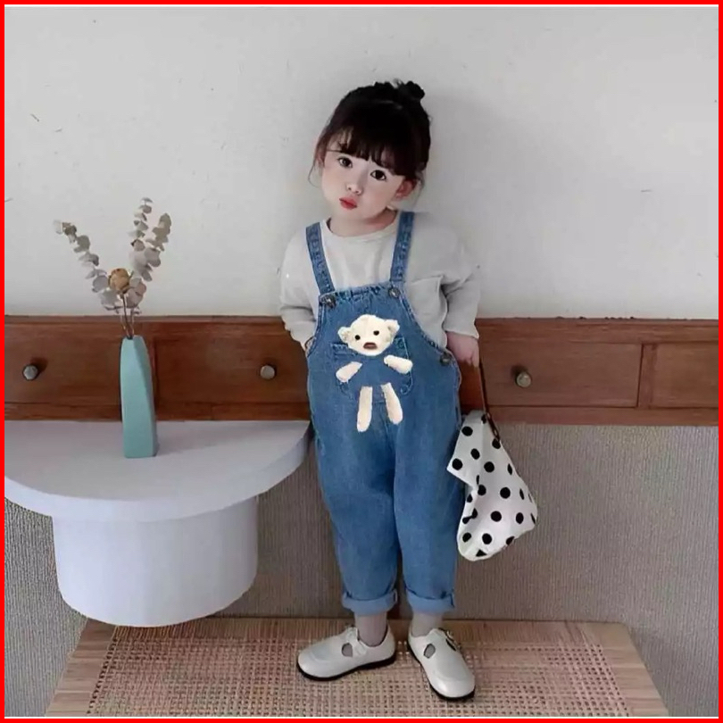 Overall Boneka Anak Perempuan Jumpsuit Celana Kodok Jeans Usia 1-7 Tahun