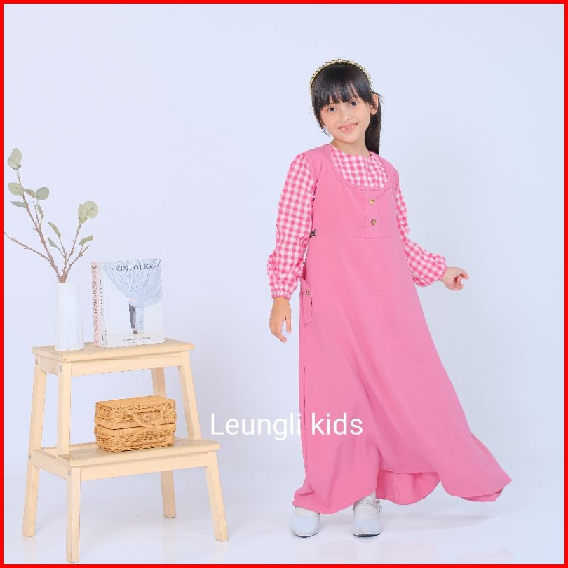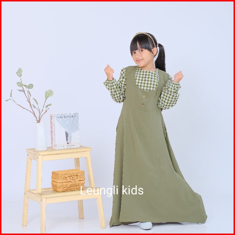 Elya Overall Pakaian Anak Perempuan Kekinian Bonus Iner Warna Hijau Sage
