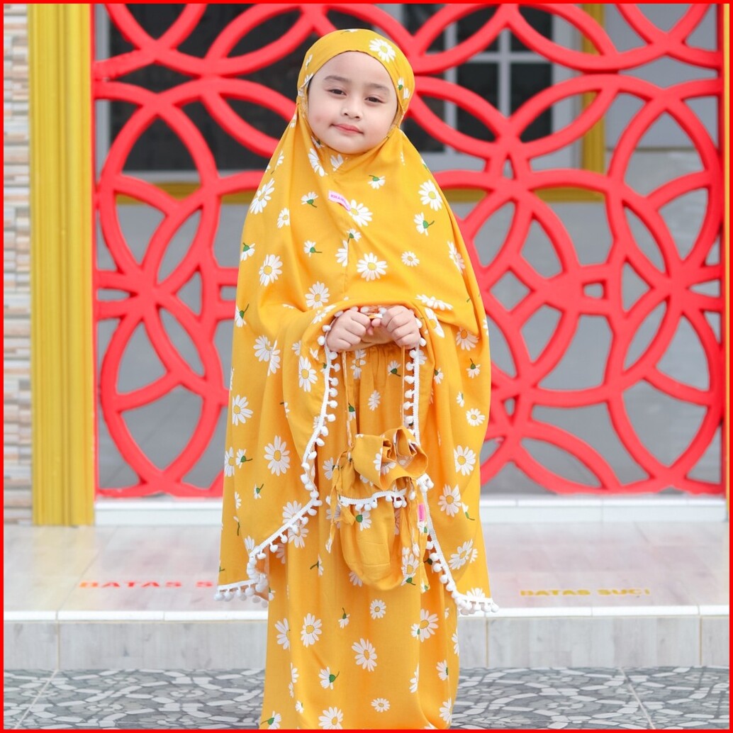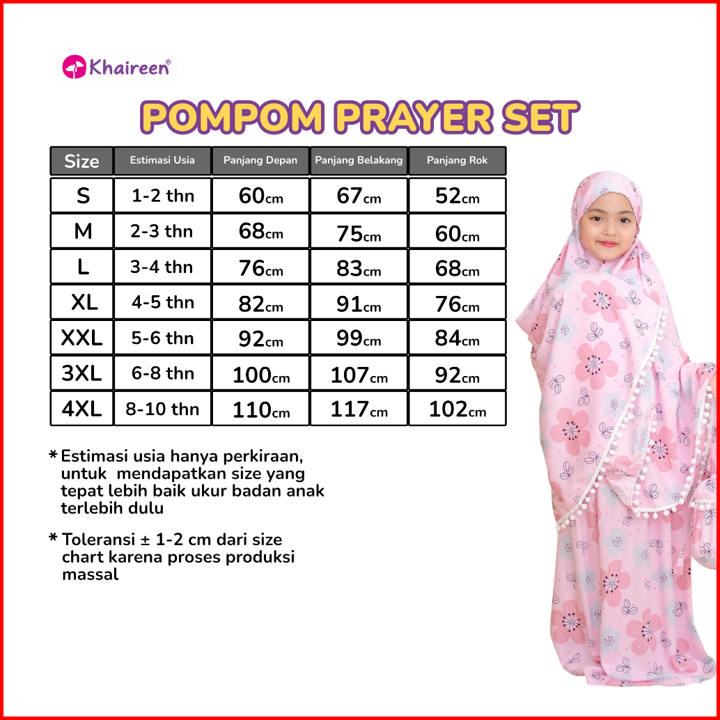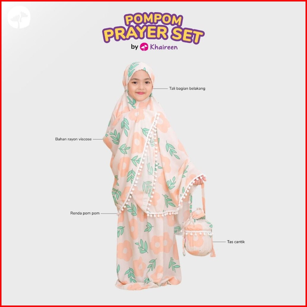 Khaireen Pompom Prayer Set 1-9 Tahun Mukena Anak Katun Rayon Adem