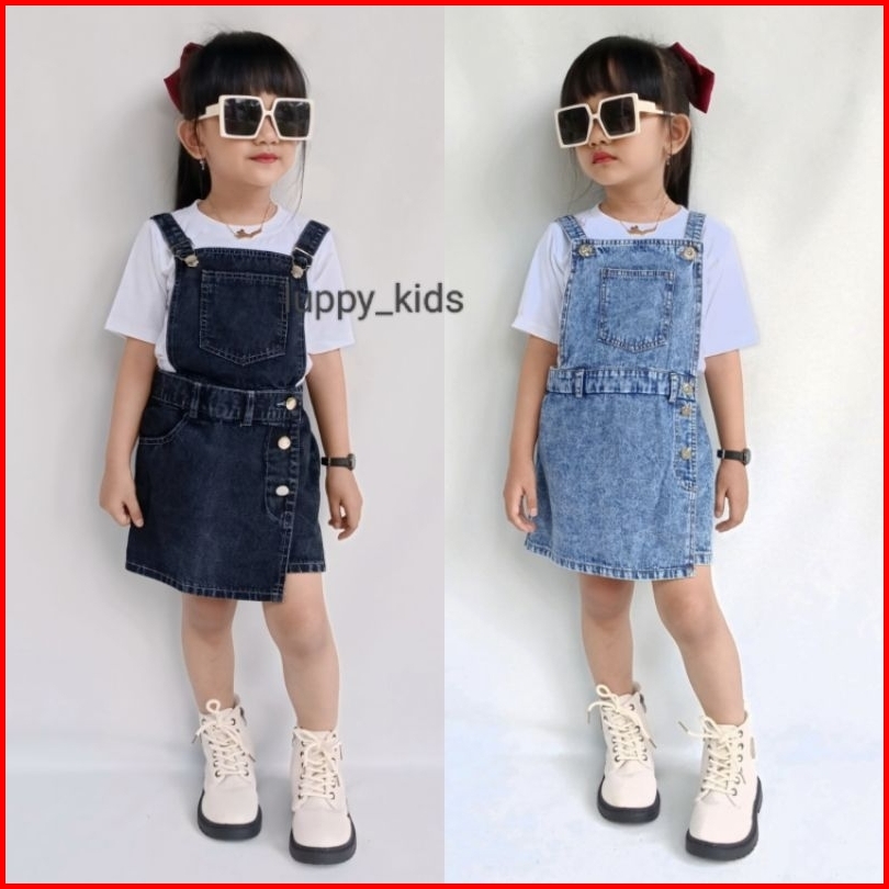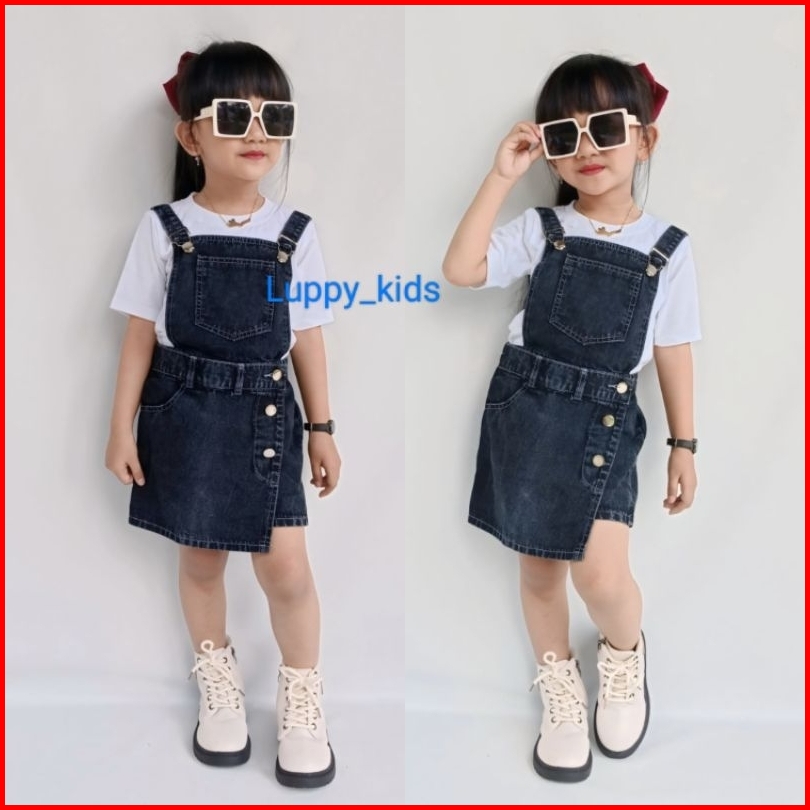One Set Overall Rok Celana Overall Rocela Jeans Anak Perempuan Kekinian