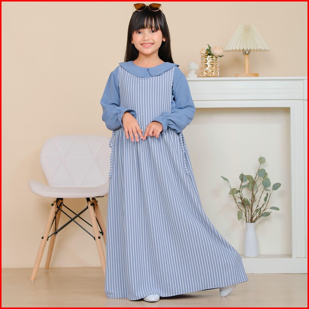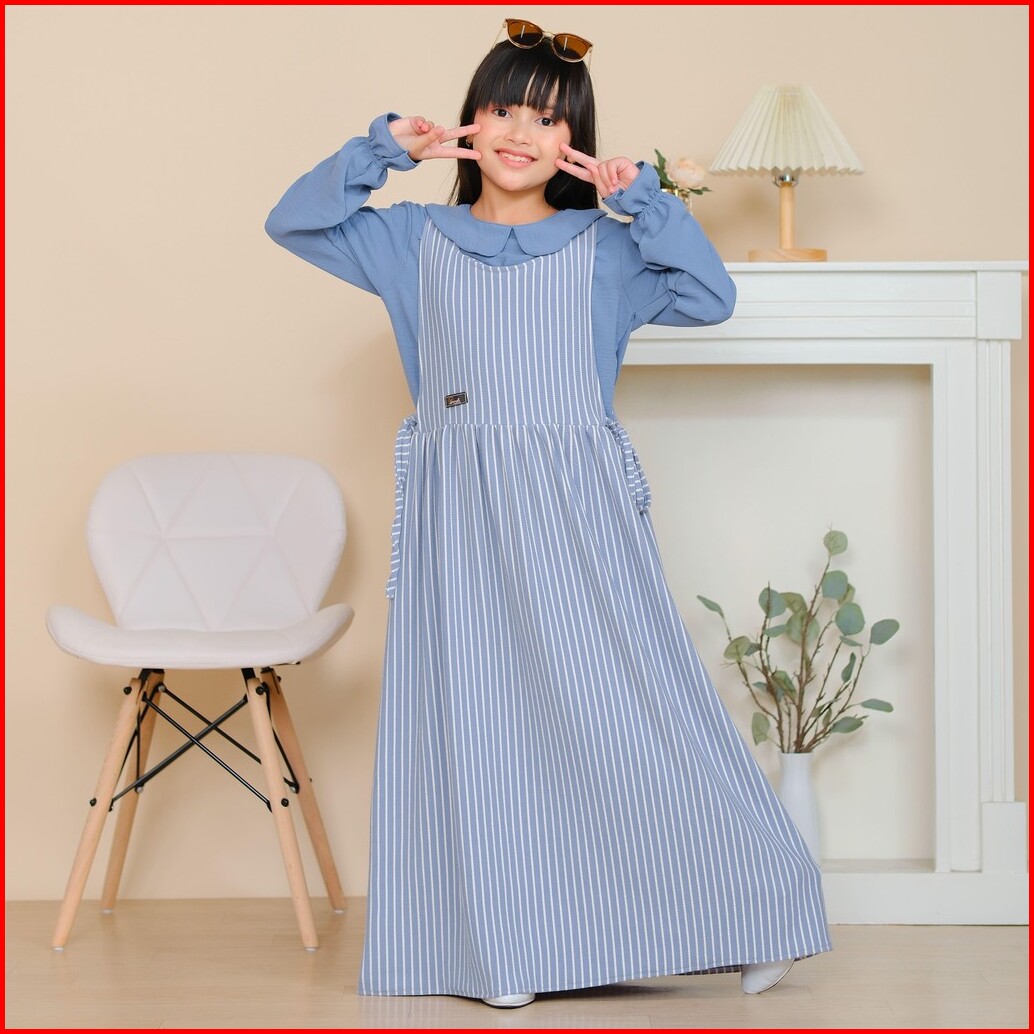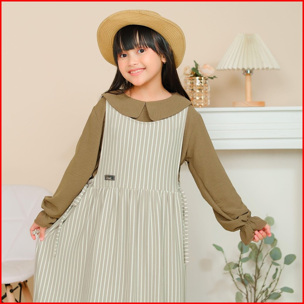Jesna Baju Overall Anak Perempuan Bahan Knit Salur Bonus Iner Fashion