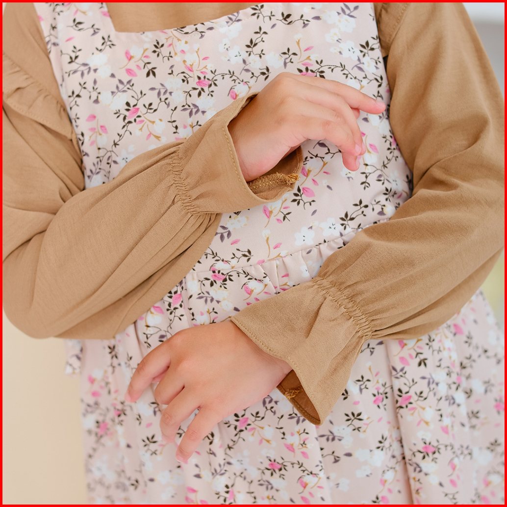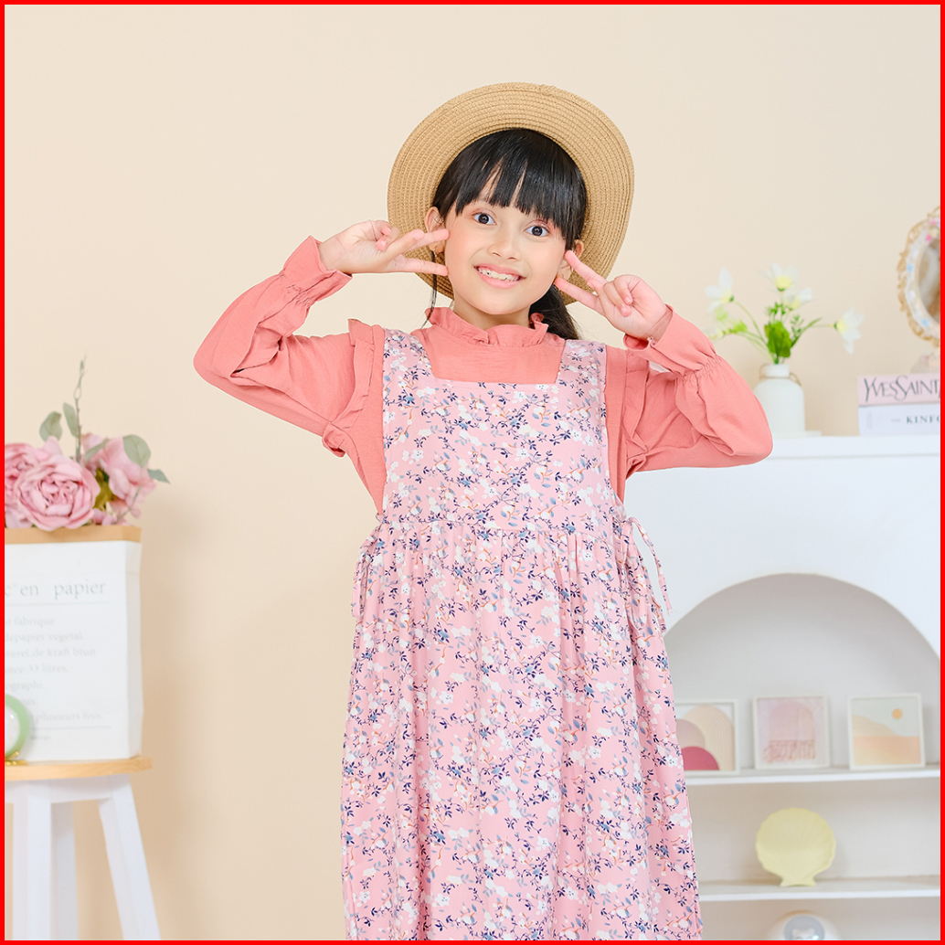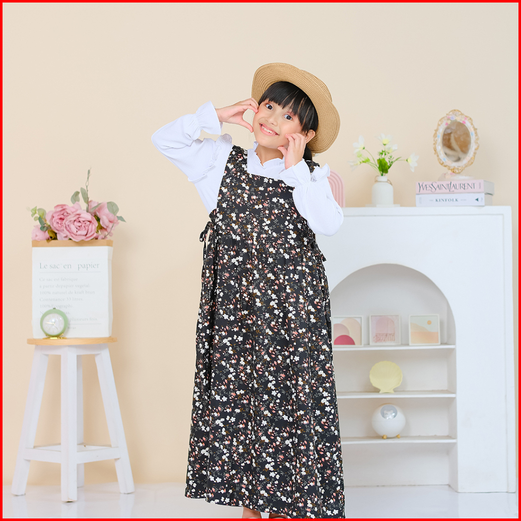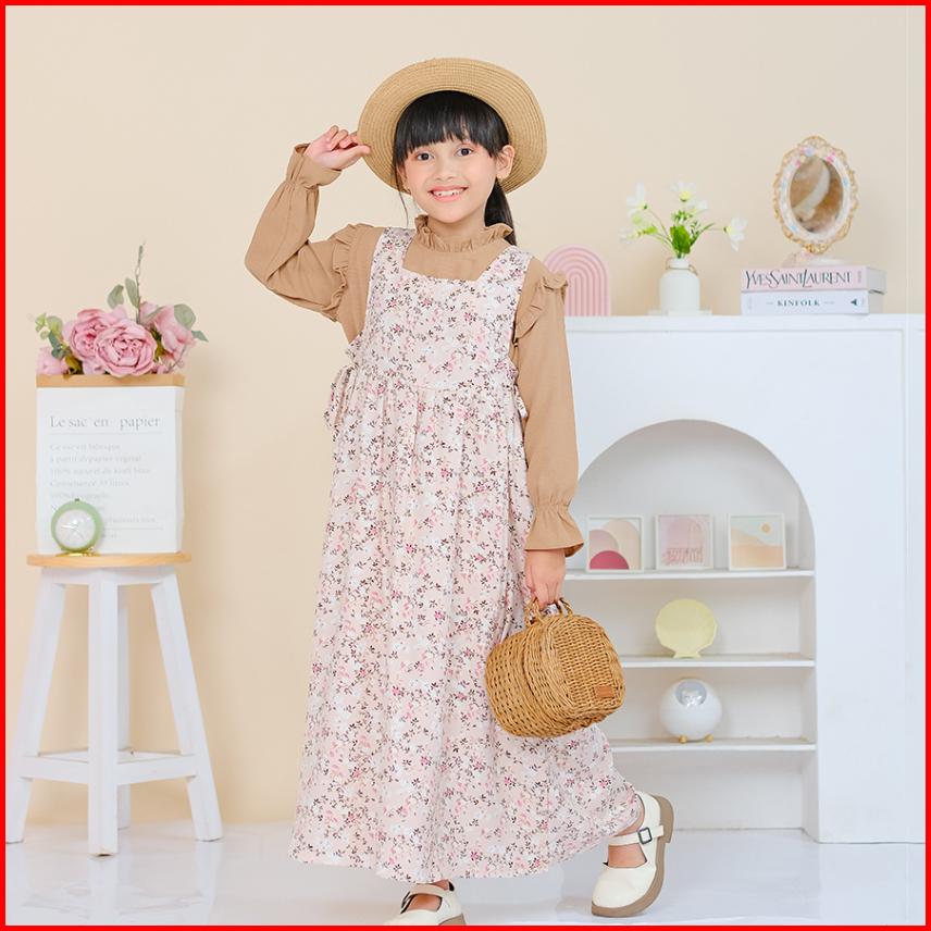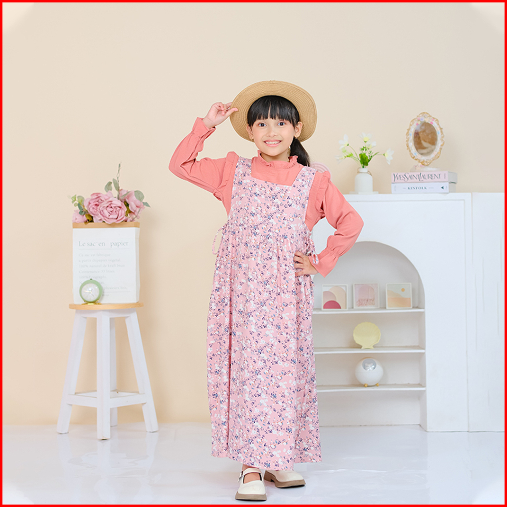 Baju Muslim Anak Perempuan 4-12 Tahun Overall Korean Style Set Blouse Iner Gamis Dress