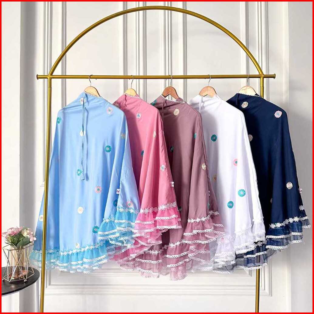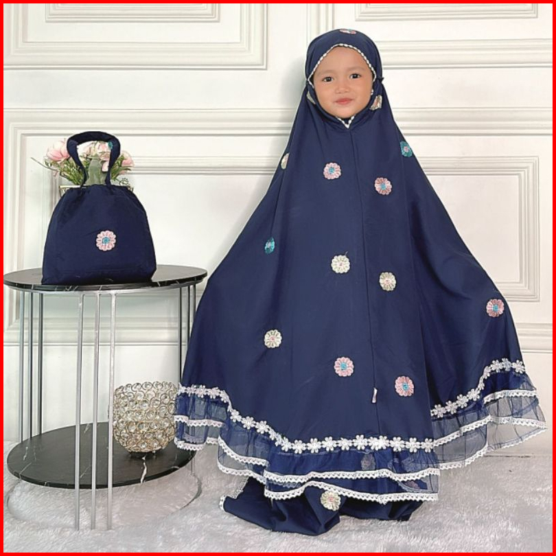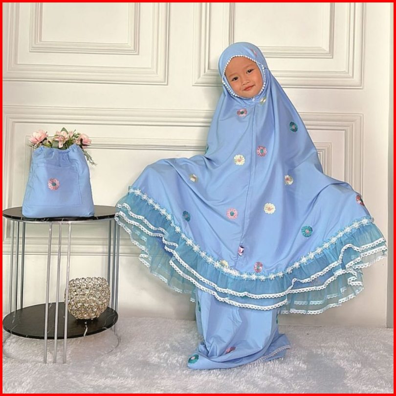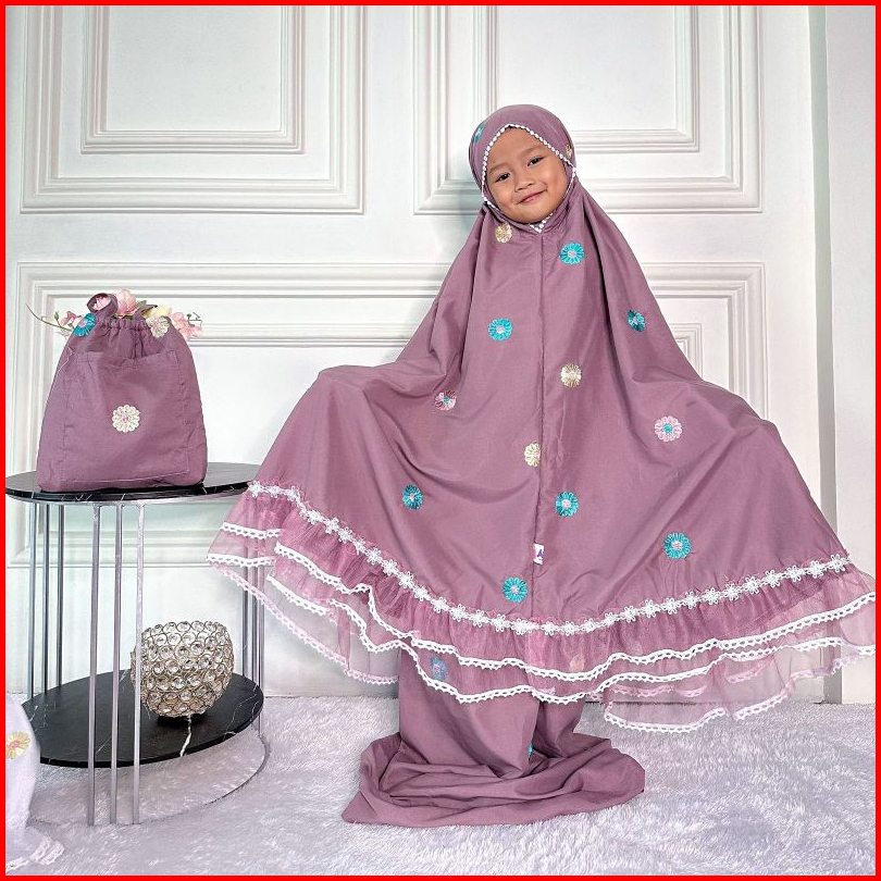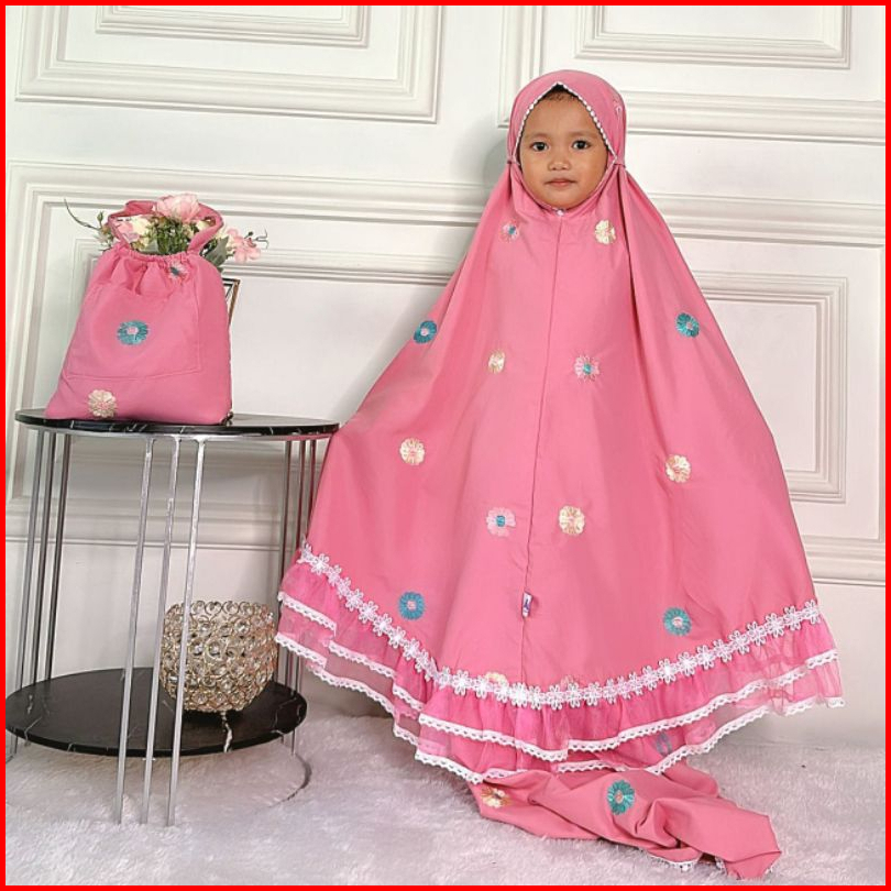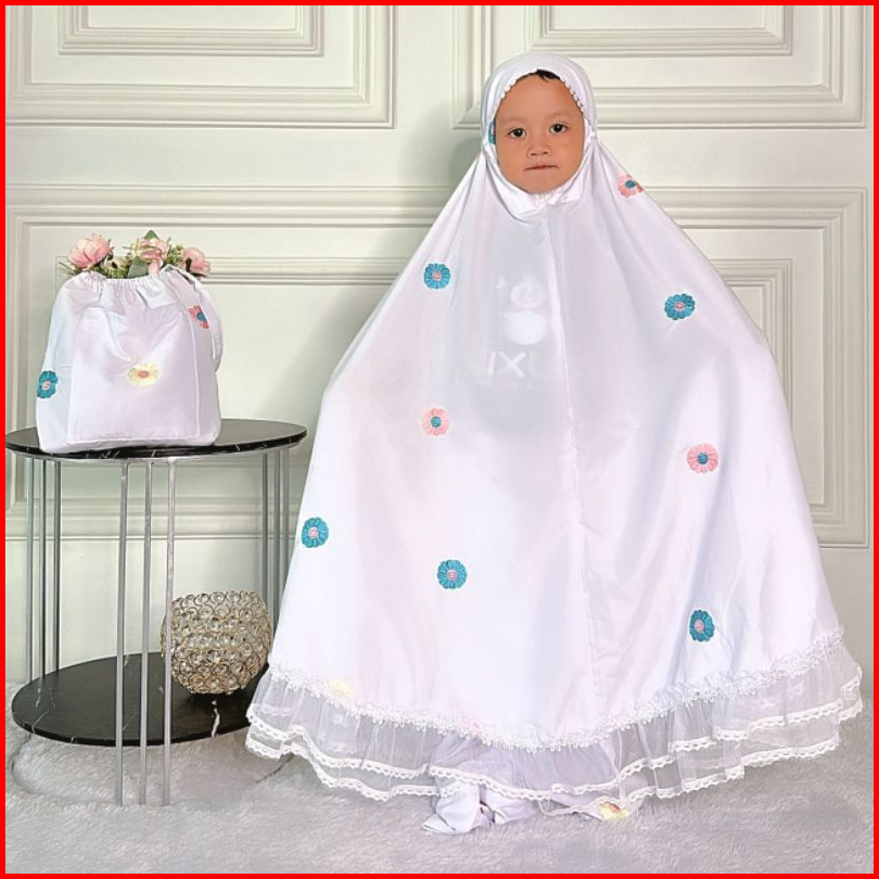Deve Mukena Anak Usia 5-7 Tahun Motif Bunga Daisy Bordir Bahan Katun Mikro Free Tas Lucu