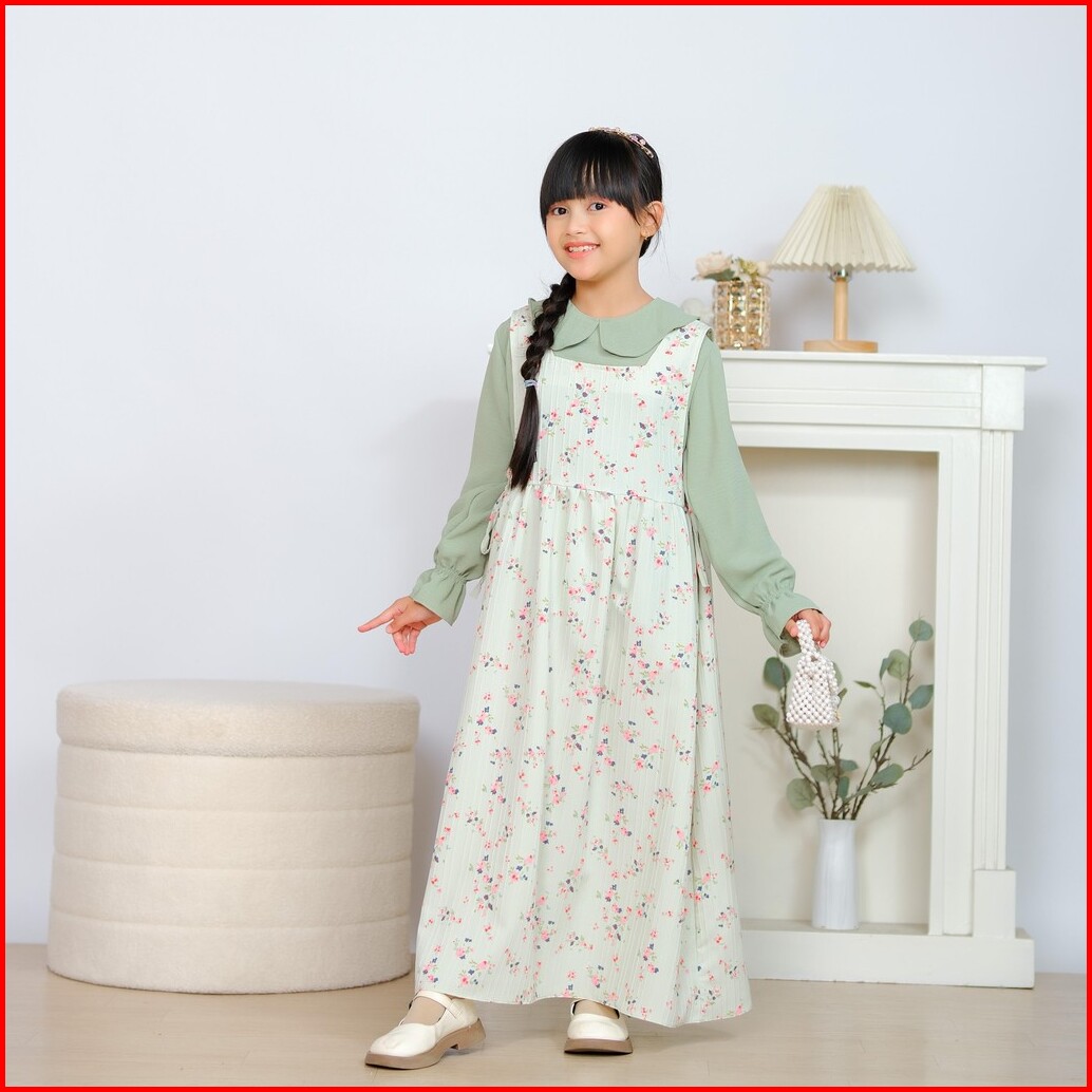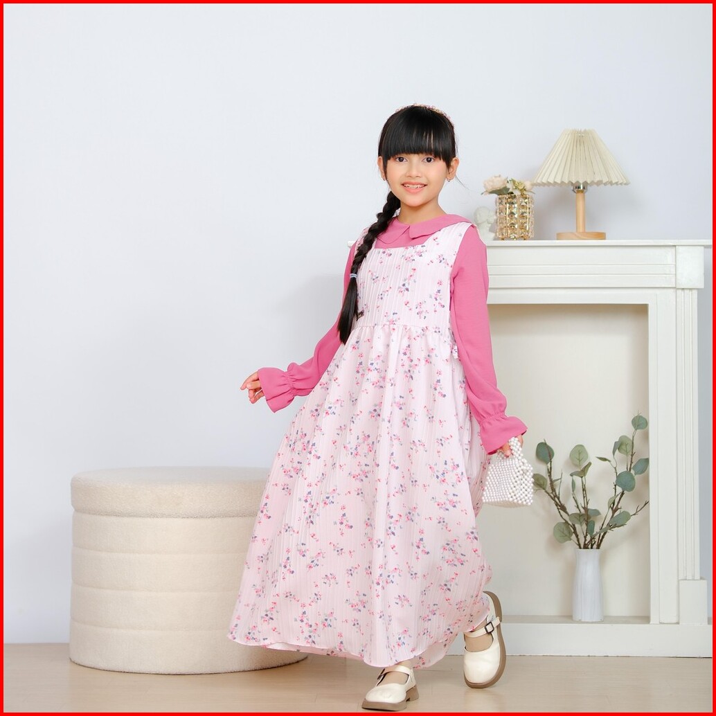Jisoo Gamis Overall Anak Perempuan Ala Korea 3 Sampai 15 Tahun Bahan Louis Cringkle Elegan Kekinian