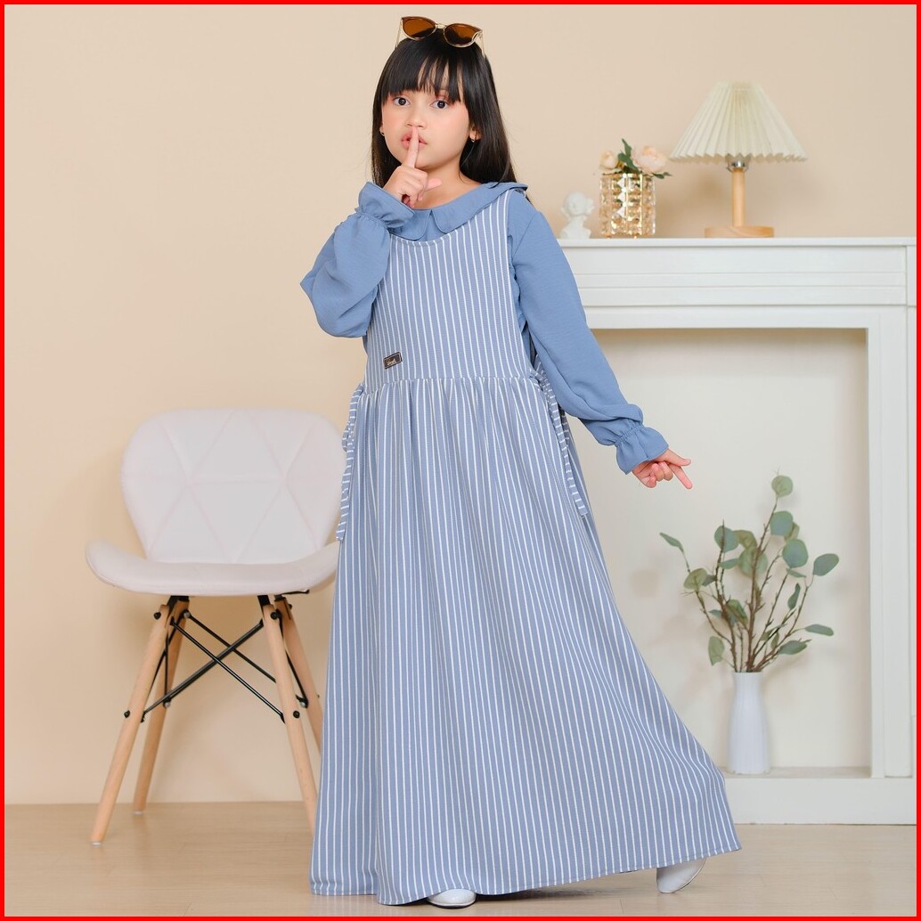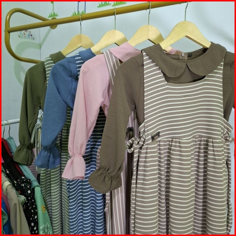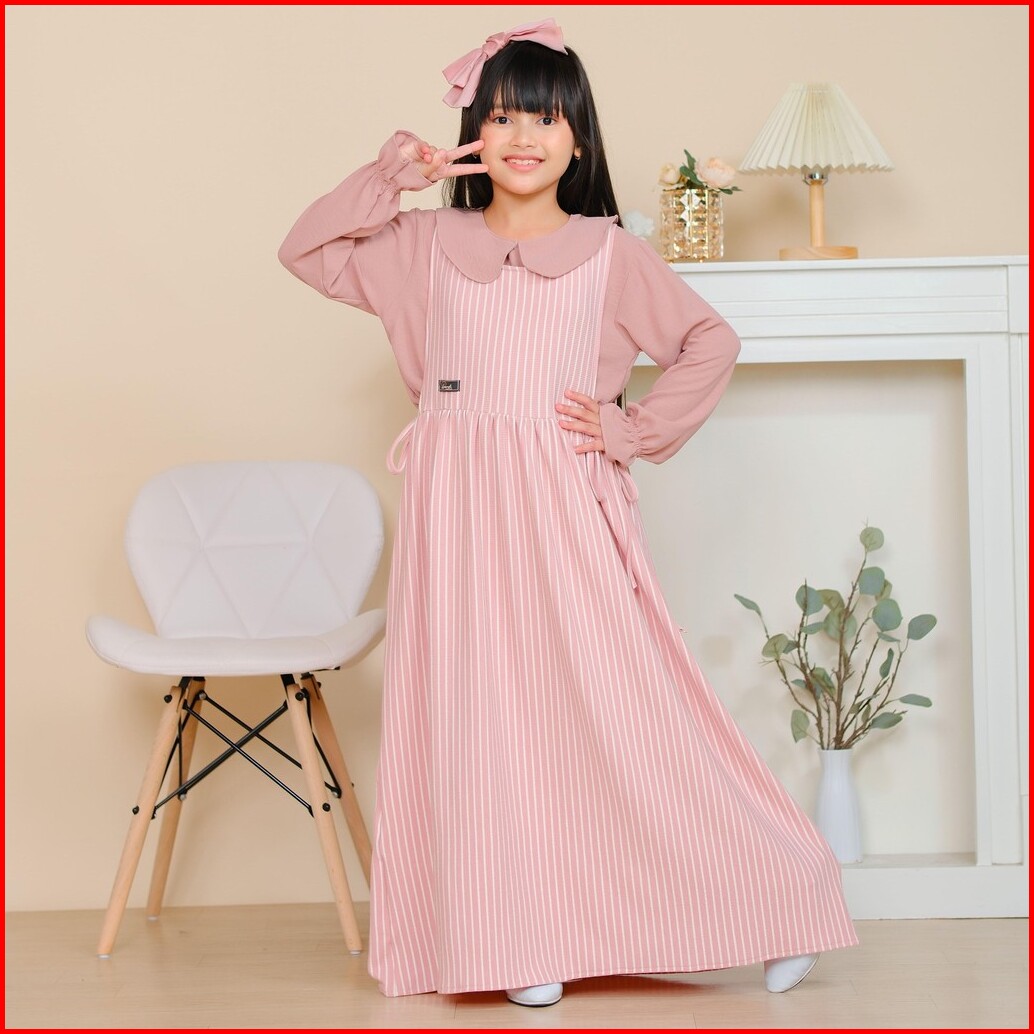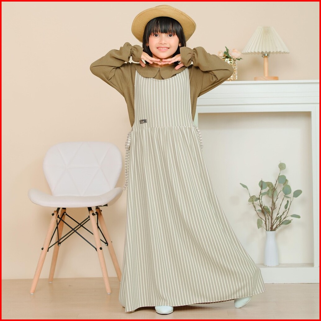 Jesna Fashion Muslim Anak Setelan Overall Anak Perempuan Bahan Knit Salur Bonus Iner