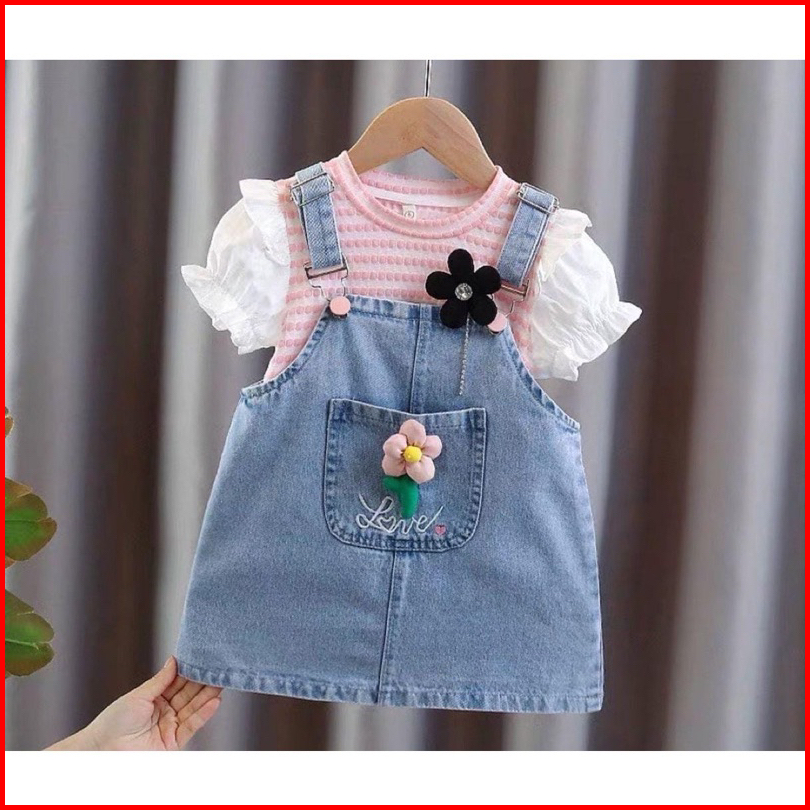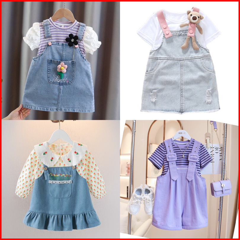 Overall Anak Perempuan Baju Kodok Jins Anak Perempuan Baju Kodok 2in1 Rok Jins Impor 1 S D 4 Thn