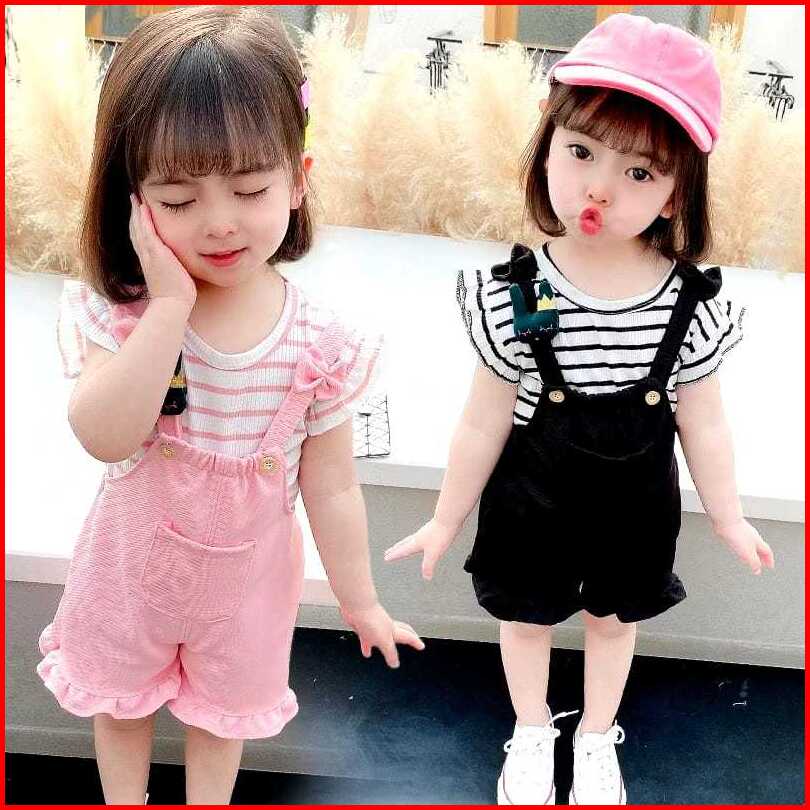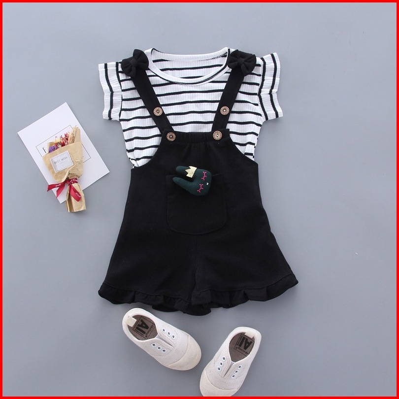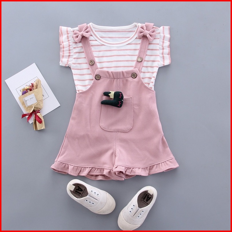Jumpsuit Bunny Stripe Setelan 2in1 Baju Overall Anak Bayi Perempuan Kodok Garis Pendek Import Cewek