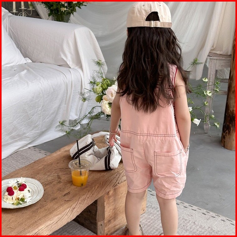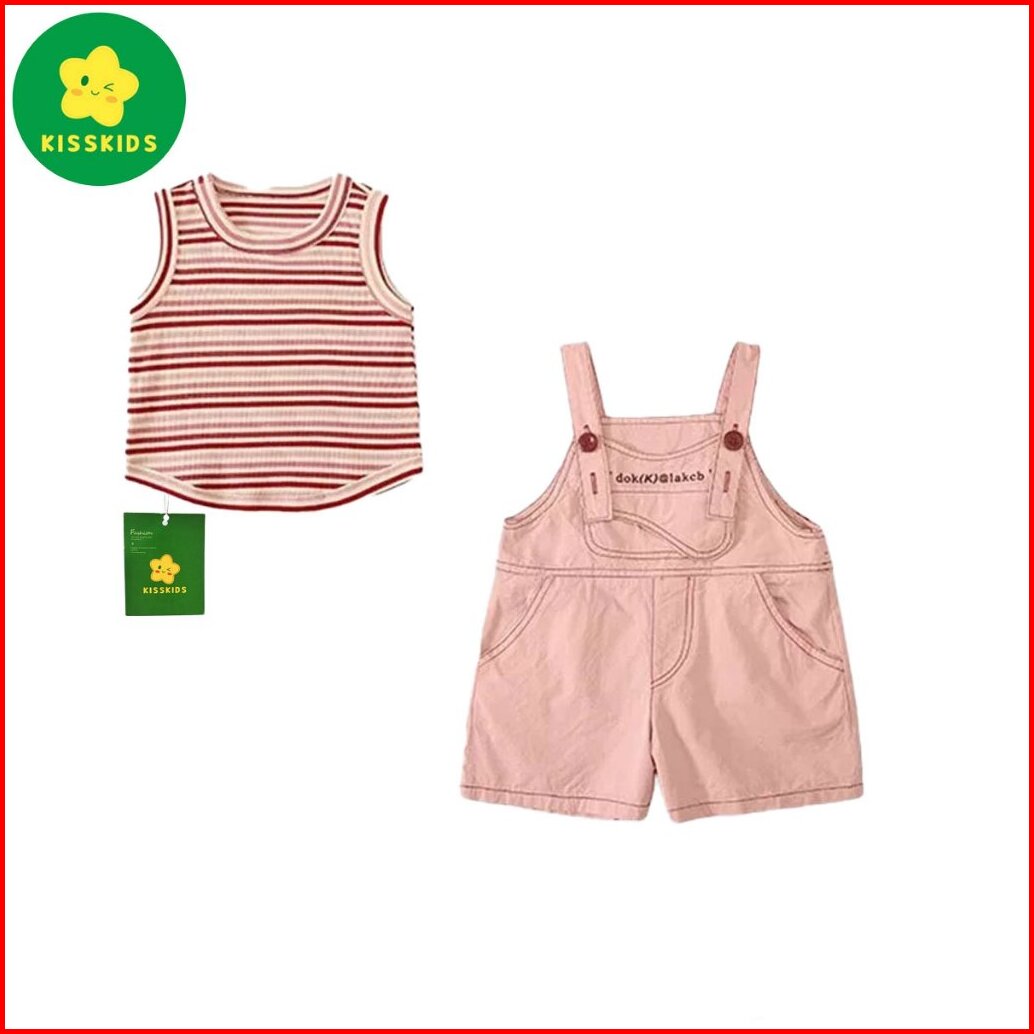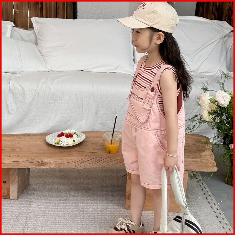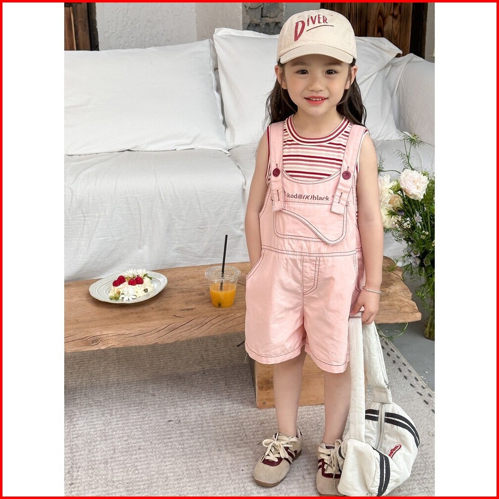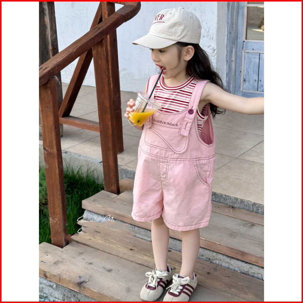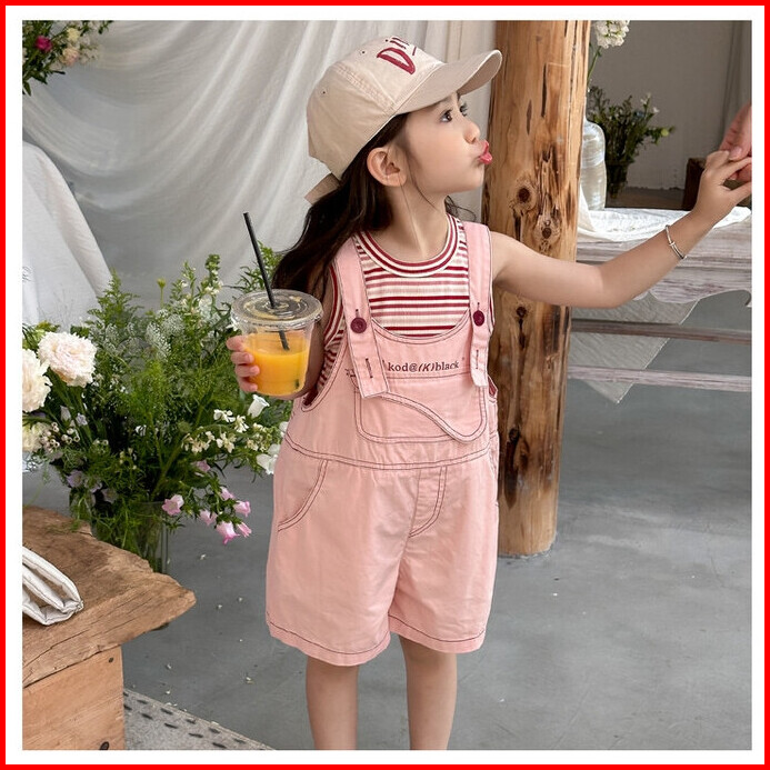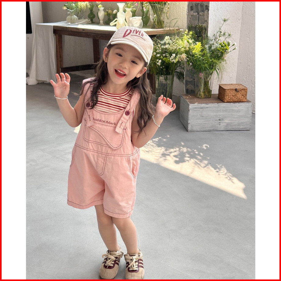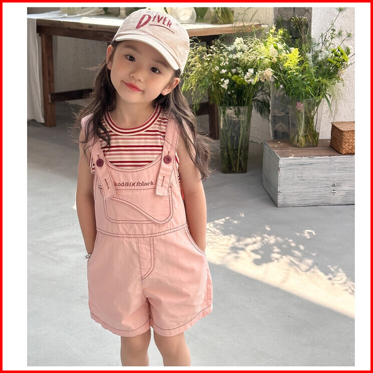 Terbaru Korean Style Anak Perempuan Setelan Overall Anak Perempuan T-shirt Bergaris Lengan Pendek Celana Corduroy Overal