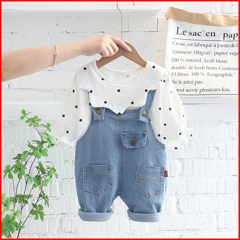 Mazakids Baju Kodok Bayi Anak Perempuan Lucu Usia 6 Bulan - 5 Tahun Motif Polkadot White Premium