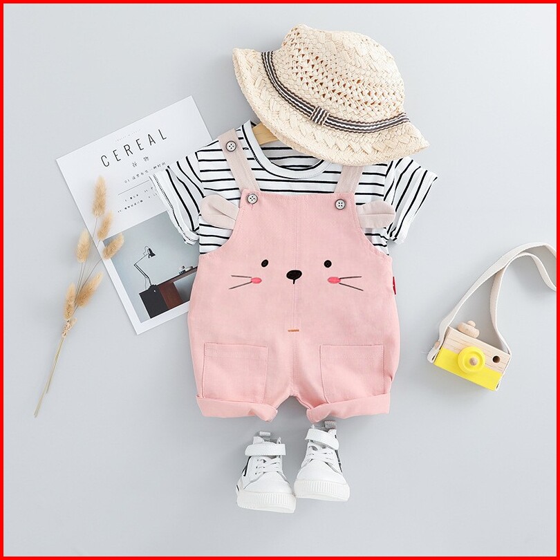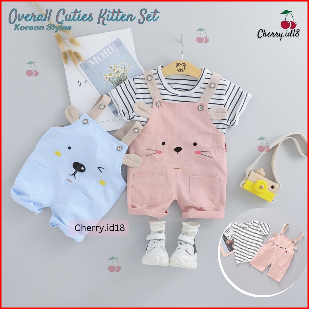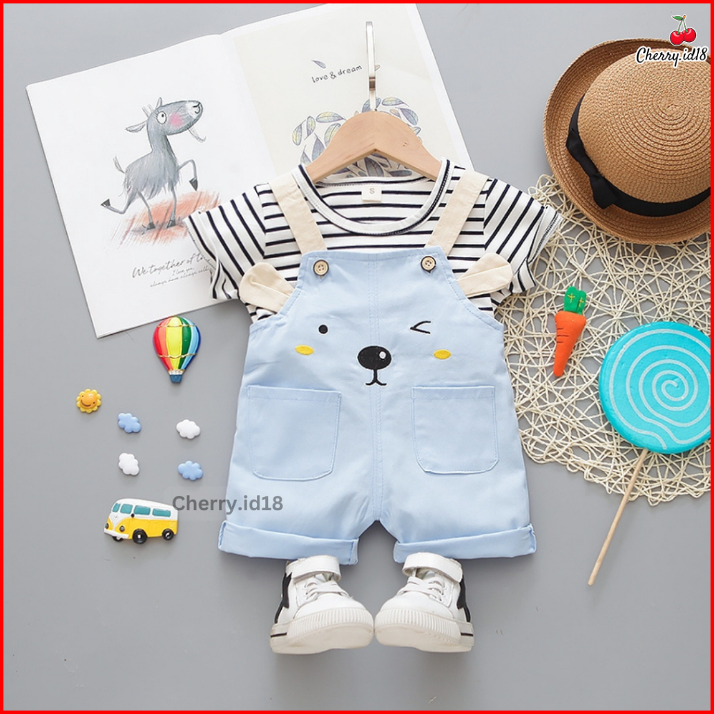 Promo 9.9 Cherry Setelan Overall Anak Perempuan Bahan Katun Lembut Motif Cat Baju Kodok Anak Ja03