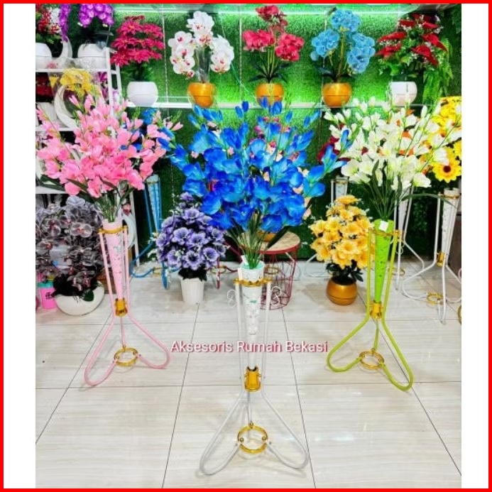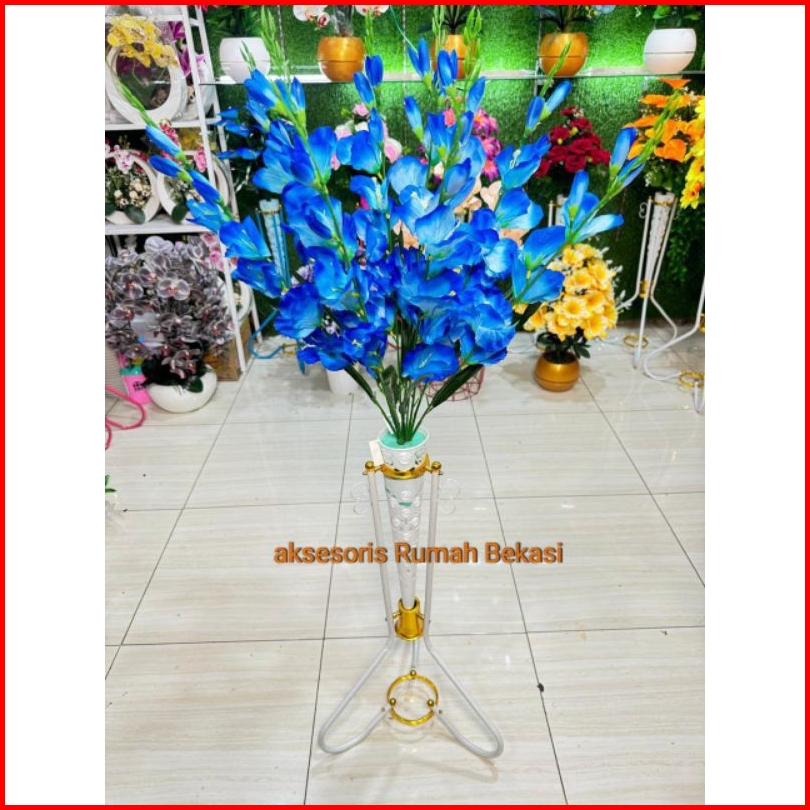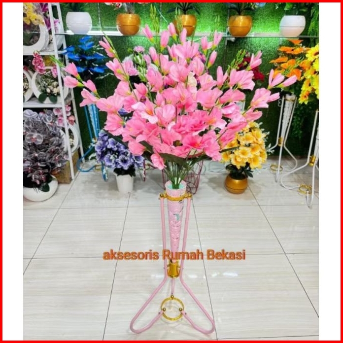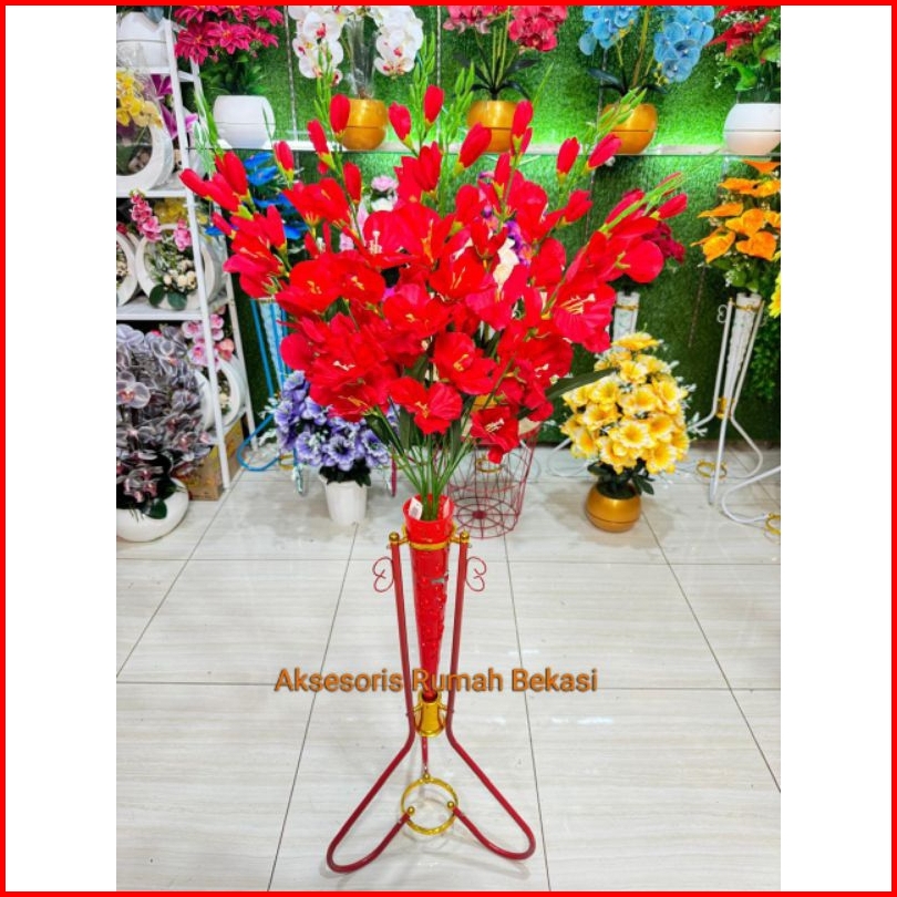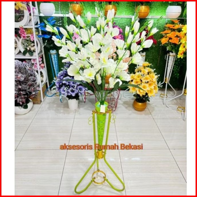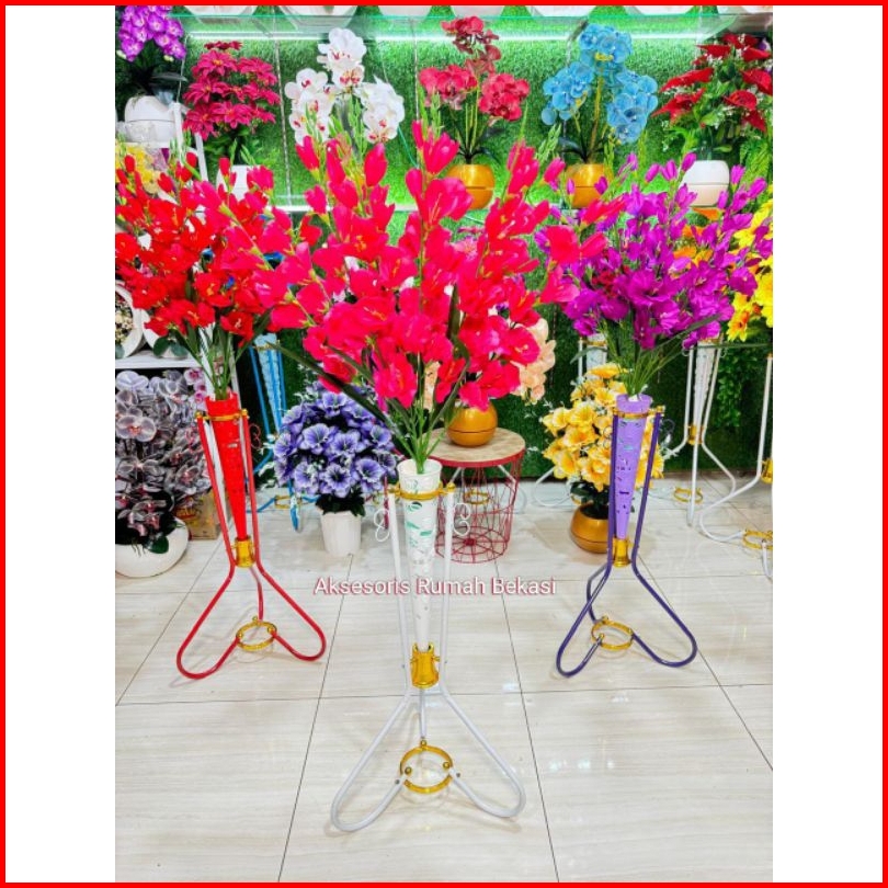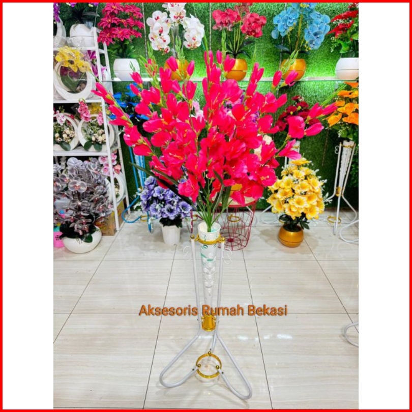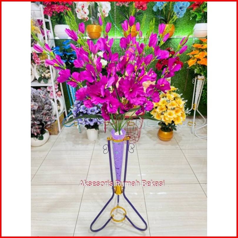 Hiasan Bunga Sudut Gladiol Artificial 10 Tangkai Bunga Dengan Pot Standing Besi