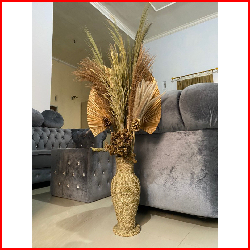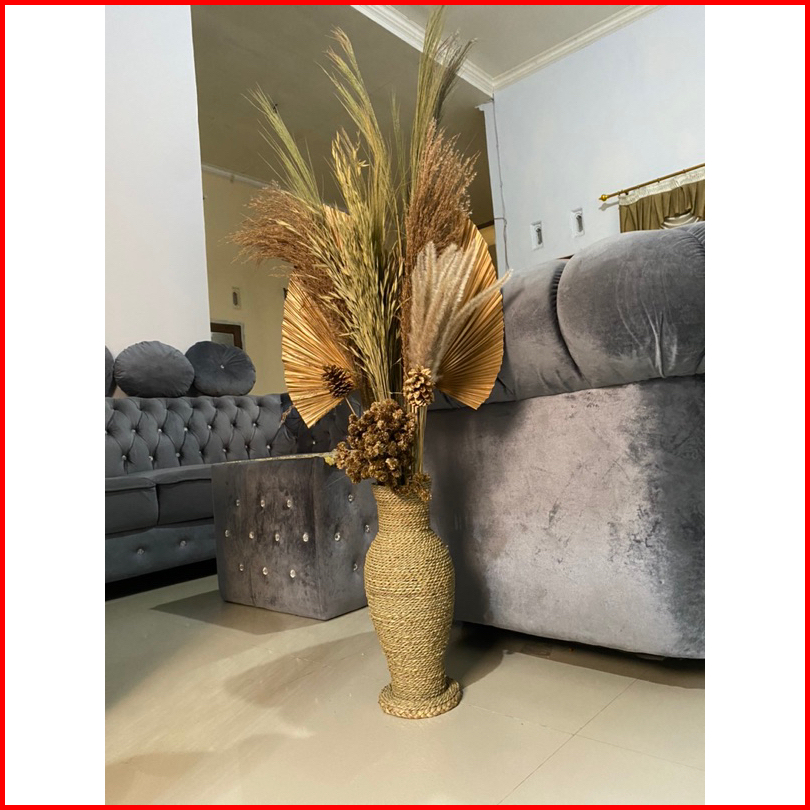 Paket Lengkap Bunga Dan Pot Daun Palem Kering Bunga Kering Pampas Rayung Dekorasi Rustic Dekorasi Rumah