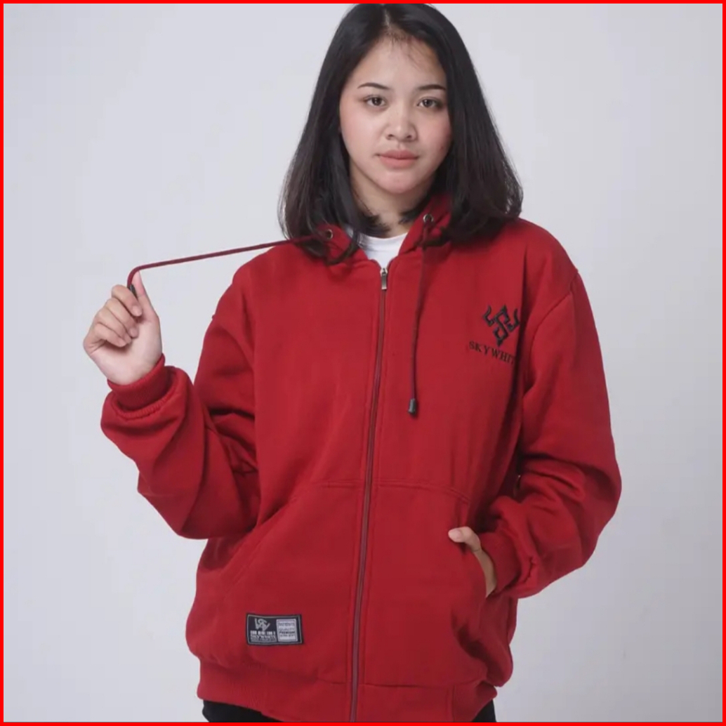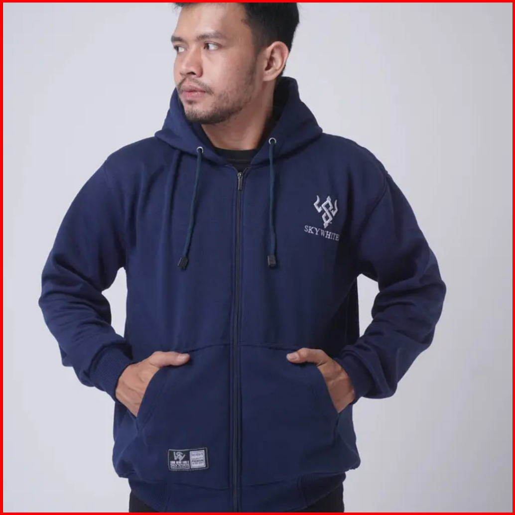 Skywhite Hoodie Sweater Zipper Resleting Katun Hoodie Bordir Bahan Tebal