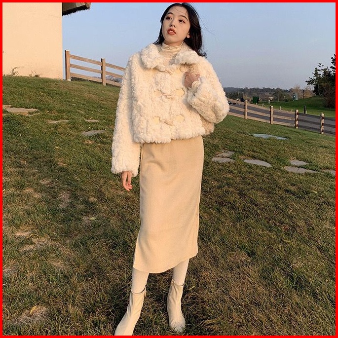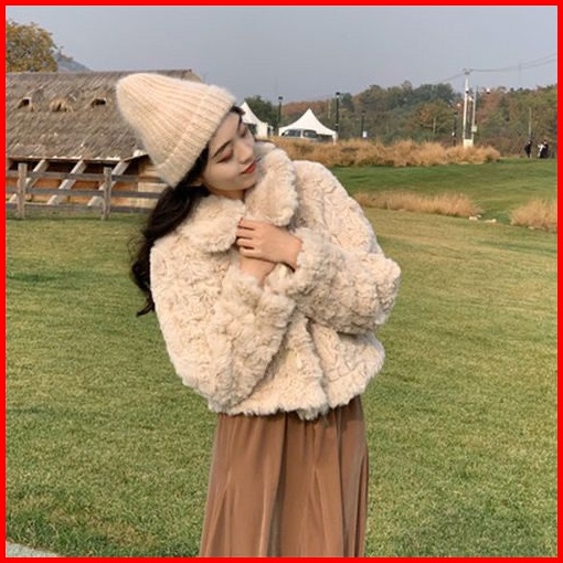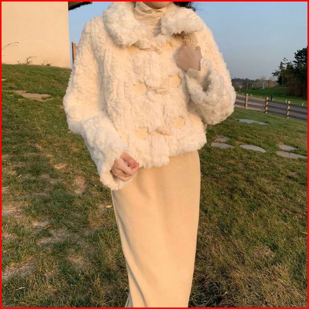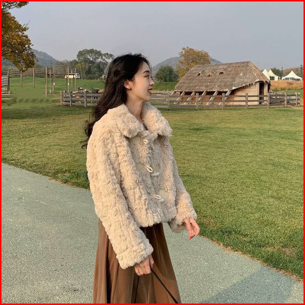 25oclock - Mantel Bulu Domba Wanita Bulu Gesper Tanduk Satu Atasan Berbulu Kelinci Imitasi Kasual Baru Musim Gugur Dan M