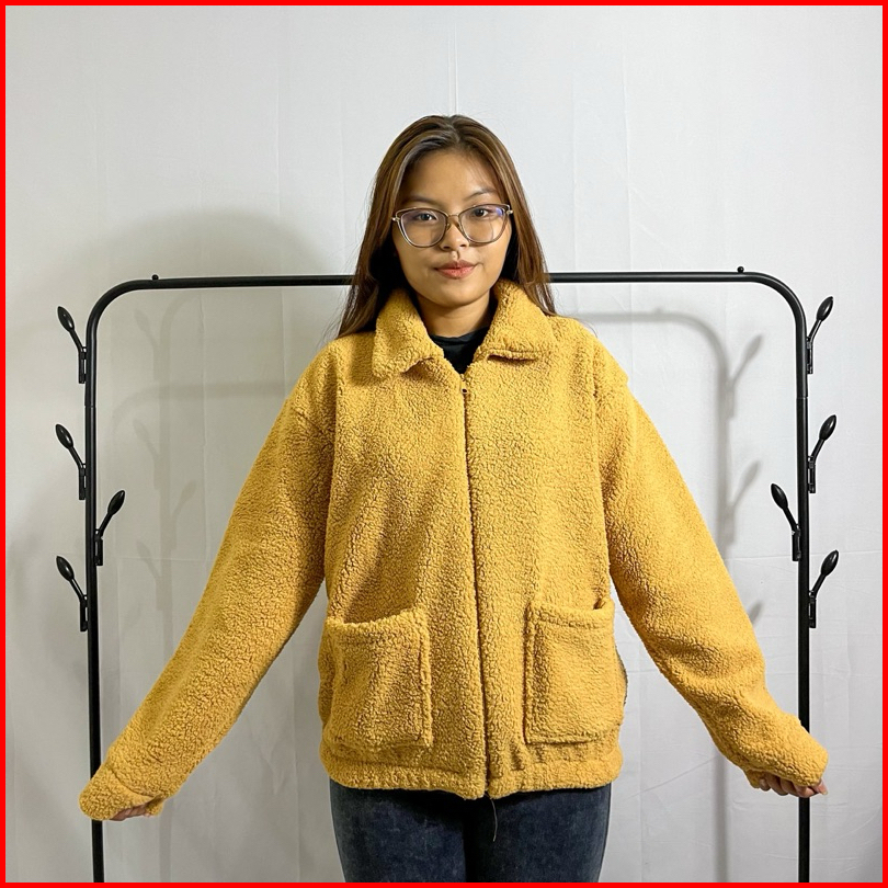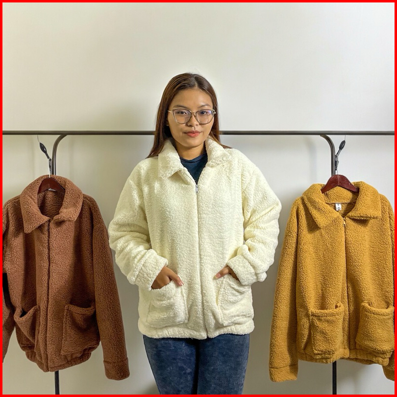 Sweater Jaket Bulu Sherpa Wanita Coat Saku Zipper