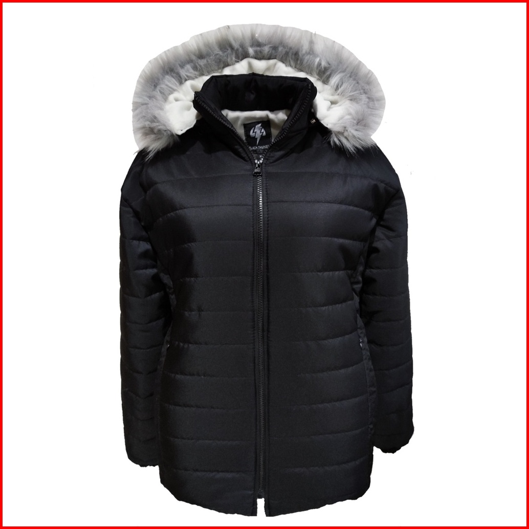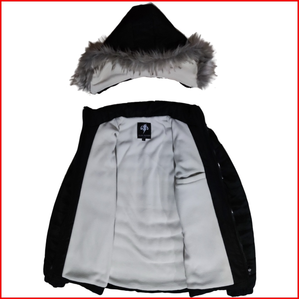 Jaket Wanita Tebal Winter Hoodie Bulu Korea Premium Terbaru Black Thunder