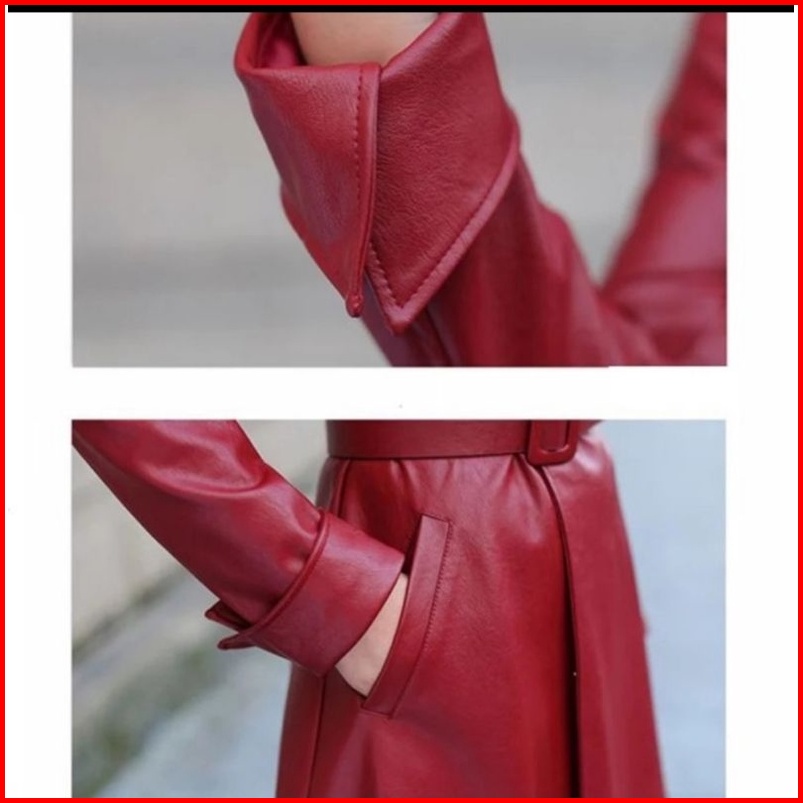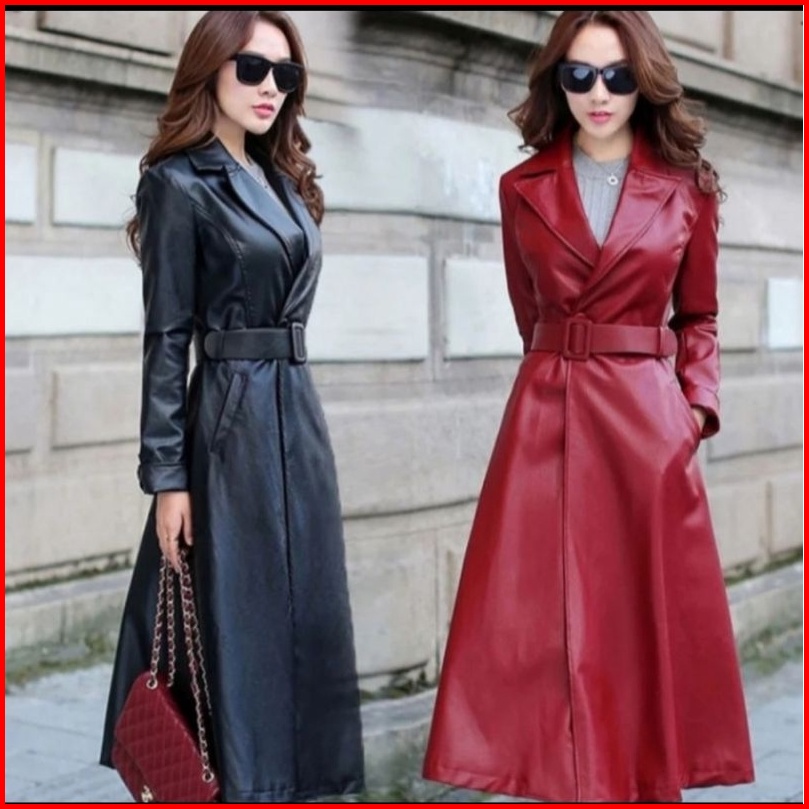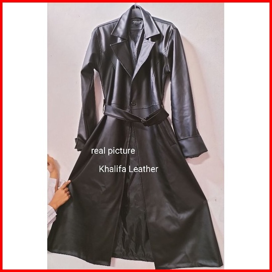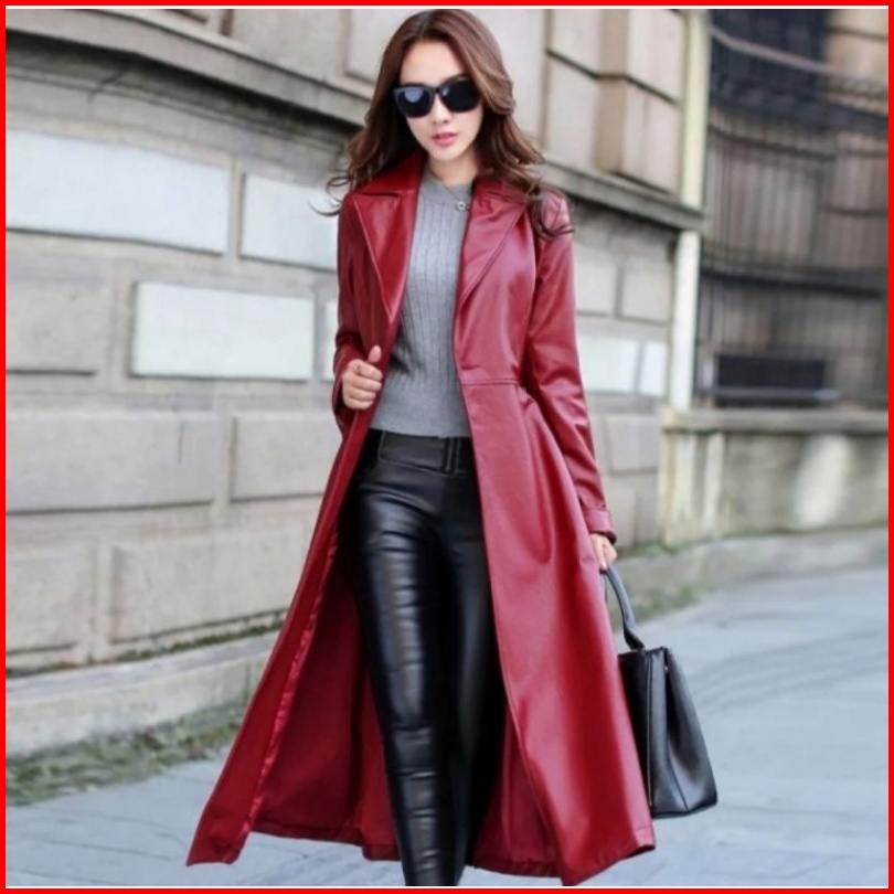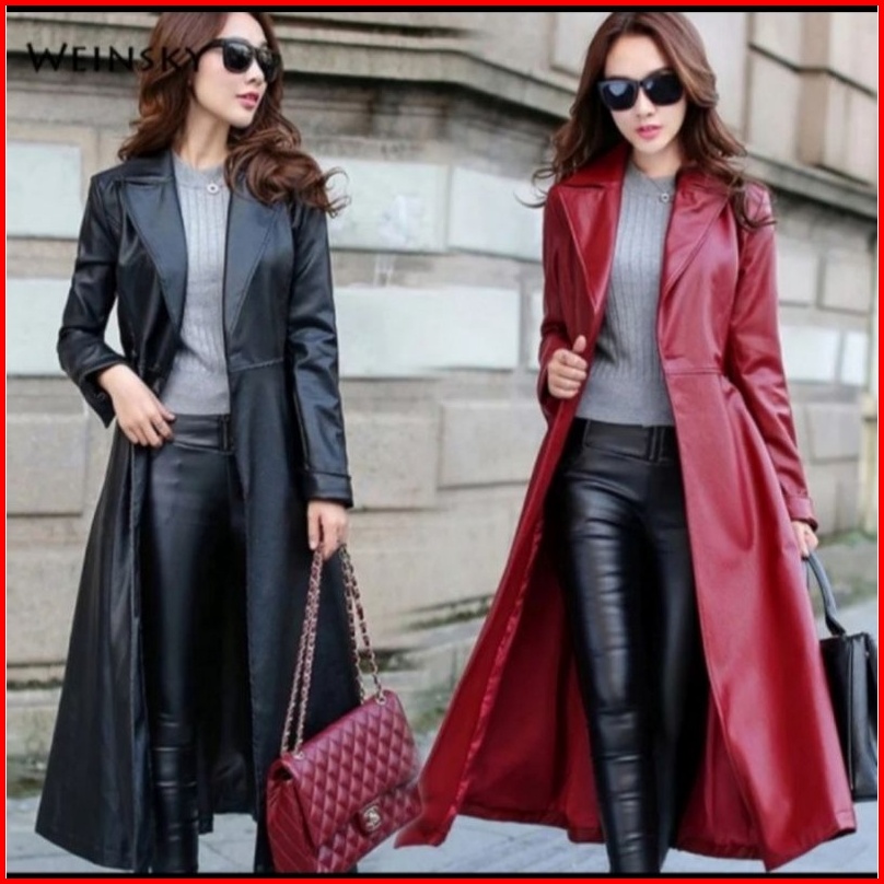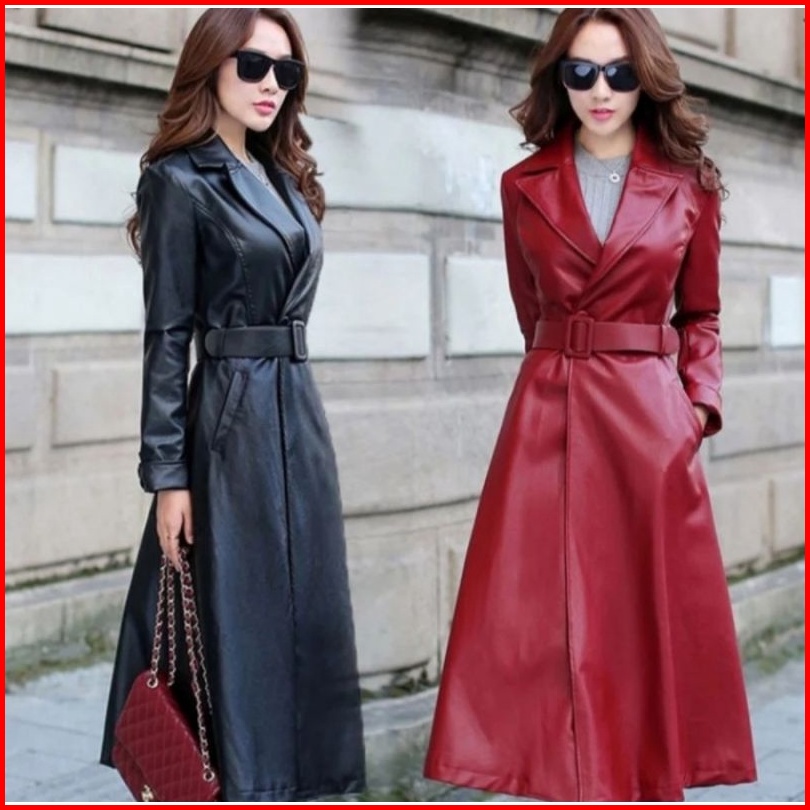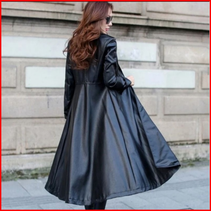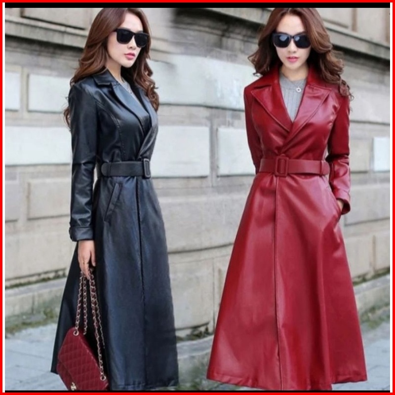 Mantel Kulit Wanita Jaket Panjang Semi Kulit Jaket Musim Dingin Kerah Lengan Panjang Khalifa Terbaru