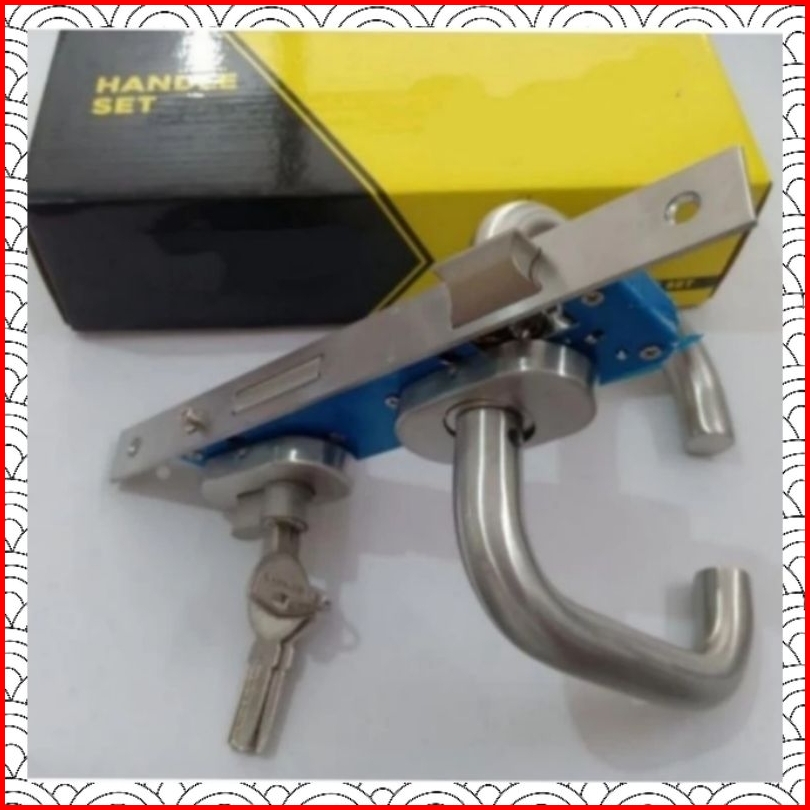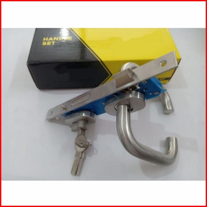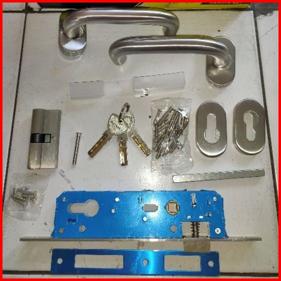 Handle Lengkung Pintu Alumunium Satu Set Stainless- Kunci A1