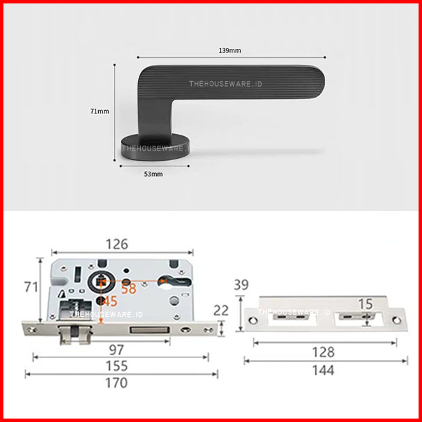 1 Set Kunci Pegangan Aluminium Ruang Pegangan Pintu Anti-pencurian Ruang Tamu Kamar Tidur Lurus Pegangan Pintu
