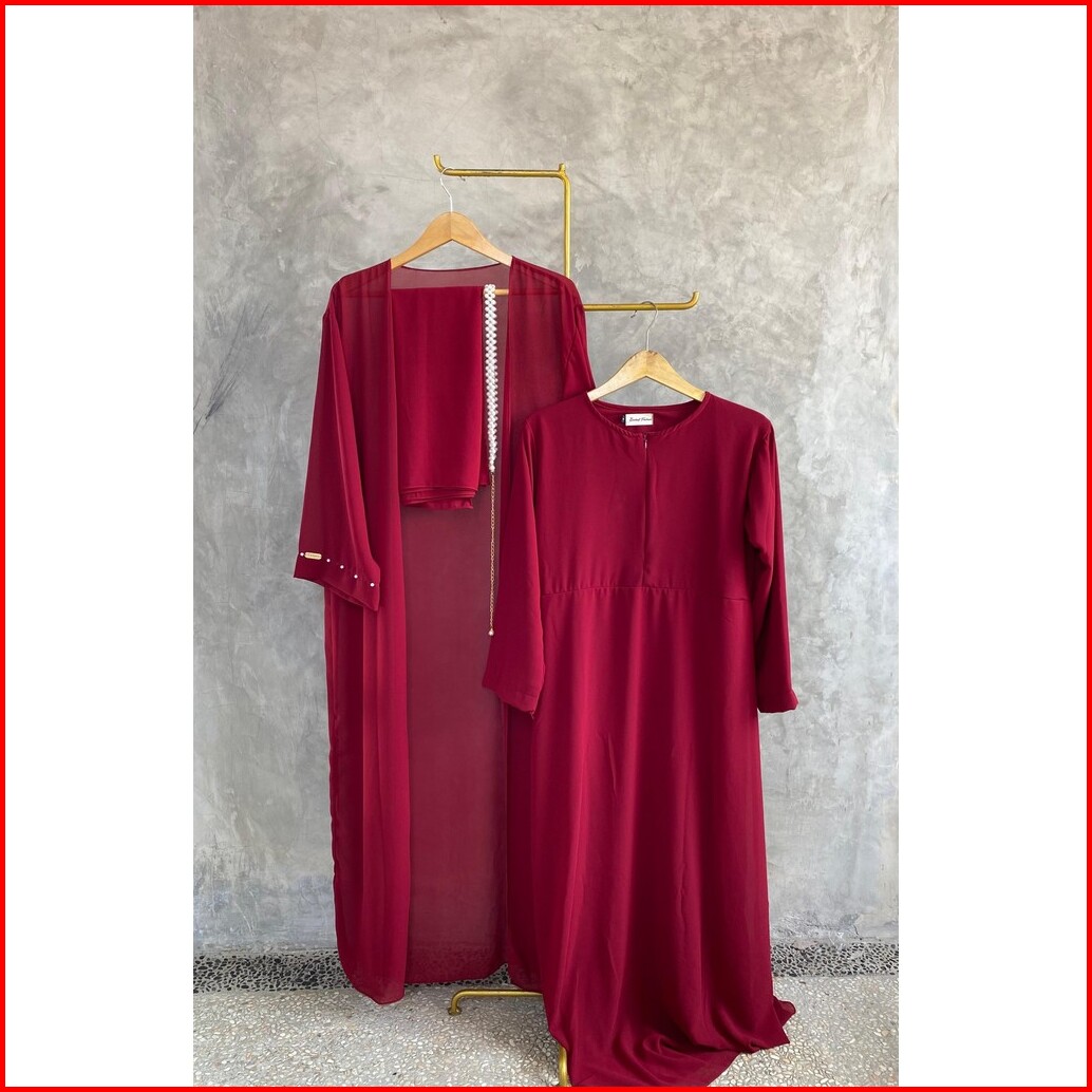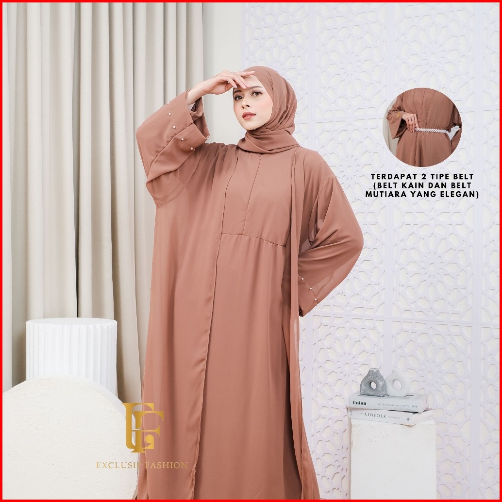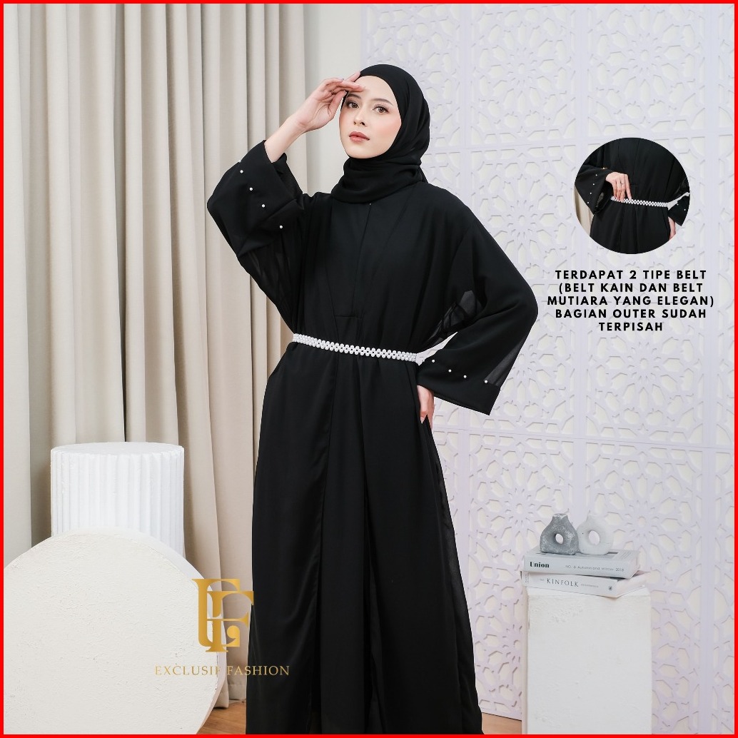 Alisha Set Abaya Bahan Ceruty Babydoll Full Furing 4in1 Busui Friendly Free Pashmina