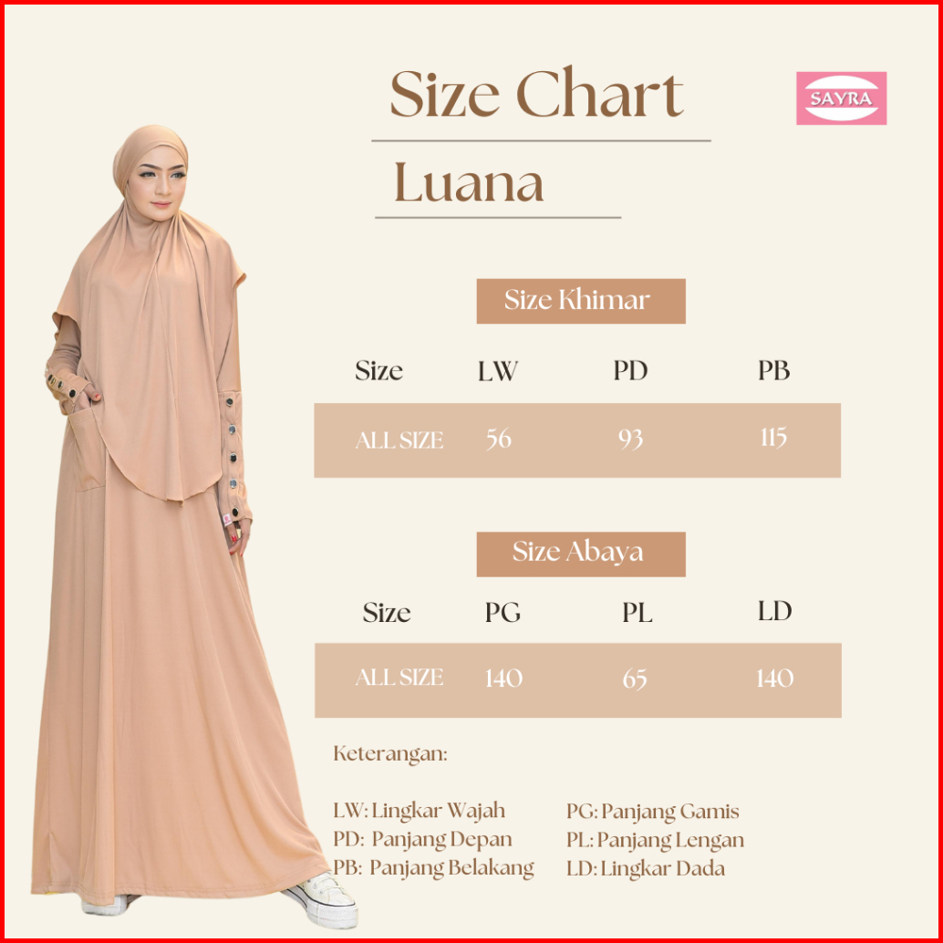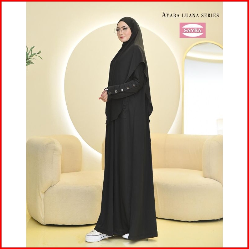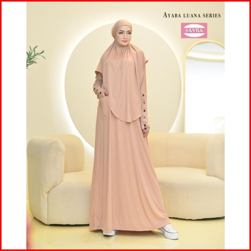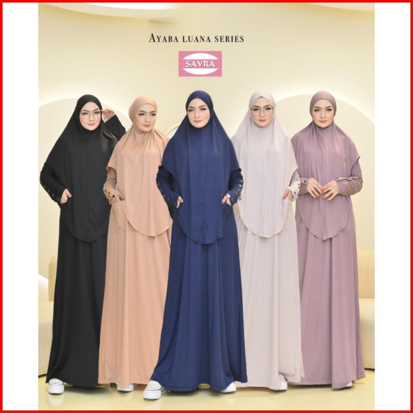 Abaya Sayra Luana Series One Set Bahan Ribb Golden K-nit Premium French Khimar Syari Muslimah Dewasa