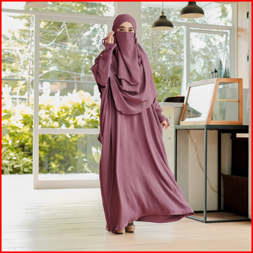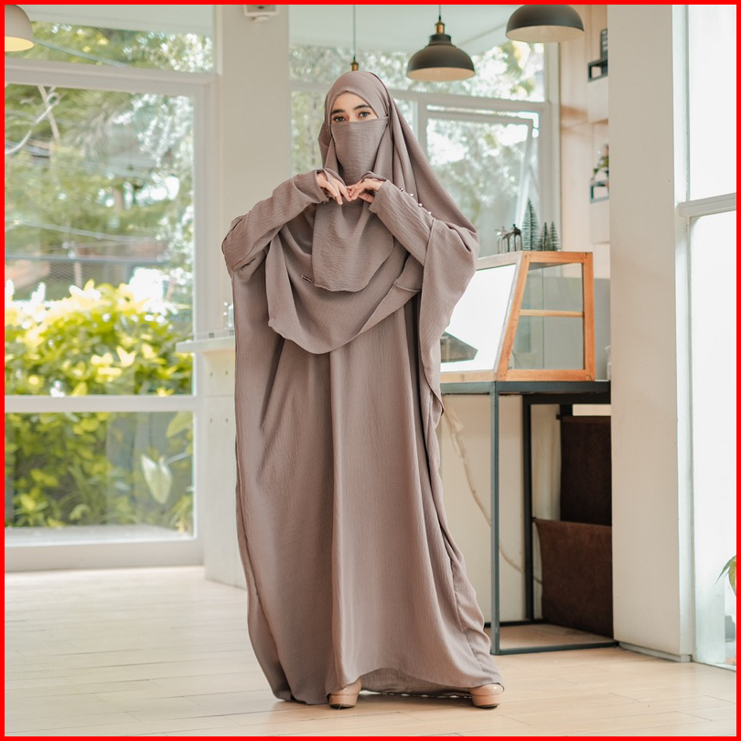Naura Abaya Set French Khimar Cadar Crinkle Airflow By Jabayaska Gamis Umroh Dress Elegan Muslim Syar I
