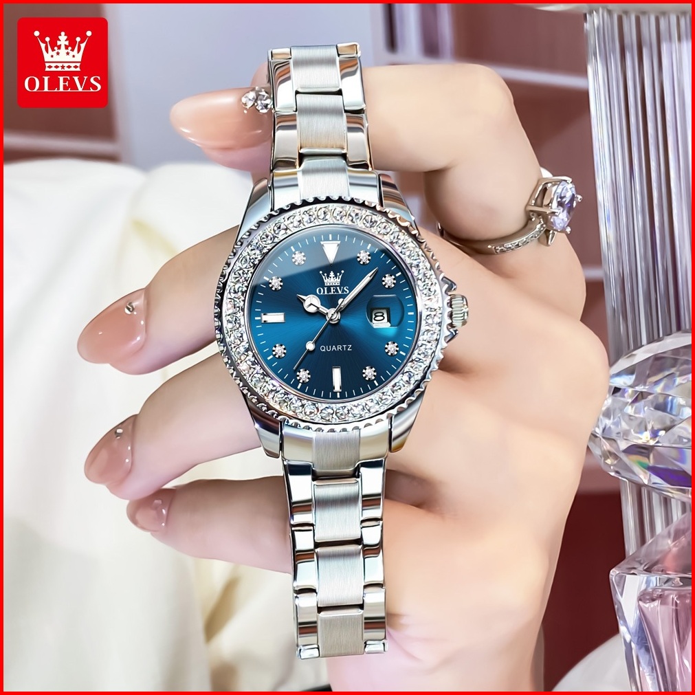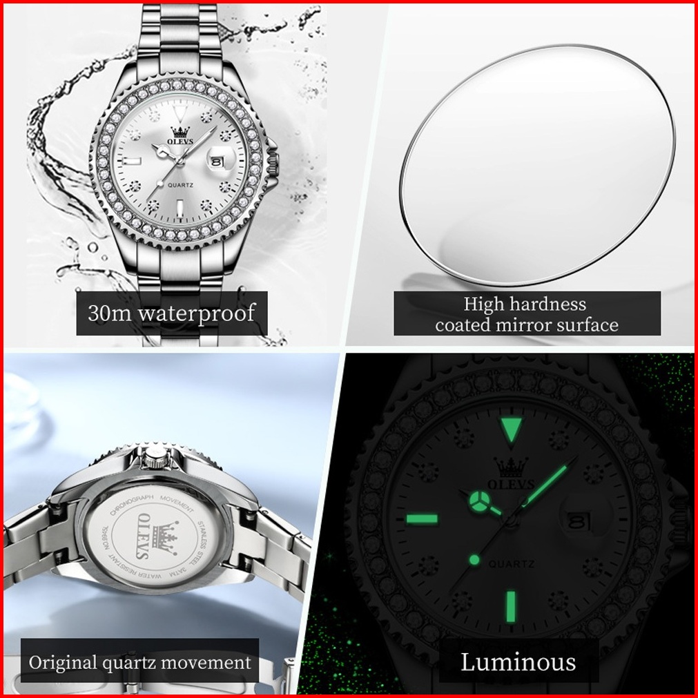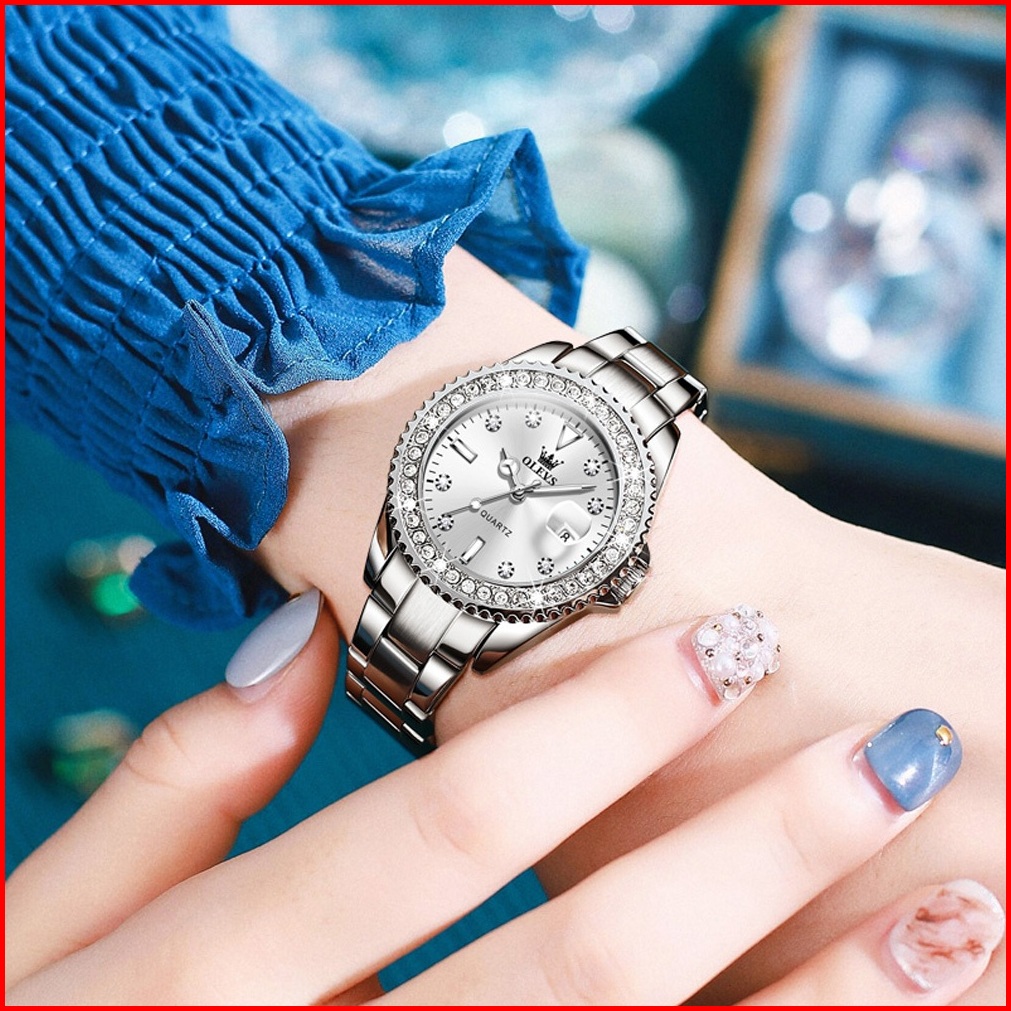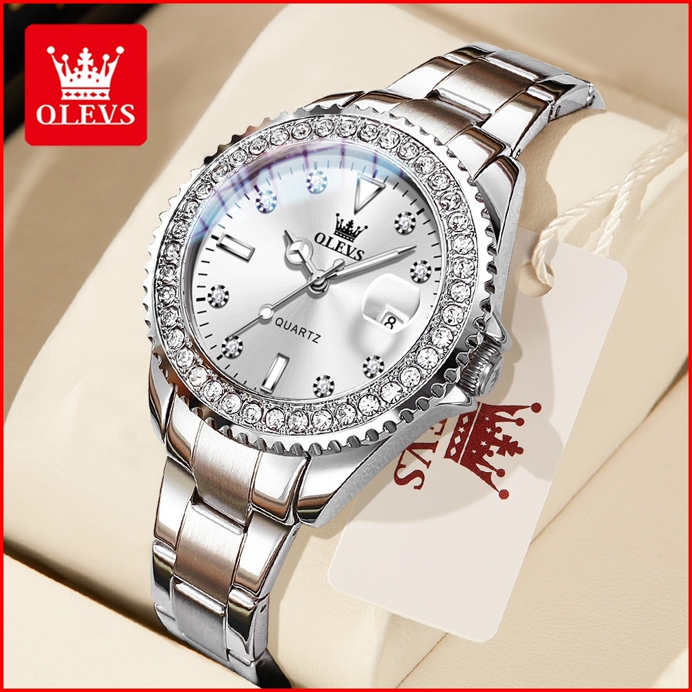 Olevs Jam Tangan Wanita Anti Air Original Stainless Steel Cewek Luminous Kalender Analog Women Watch Model 9945