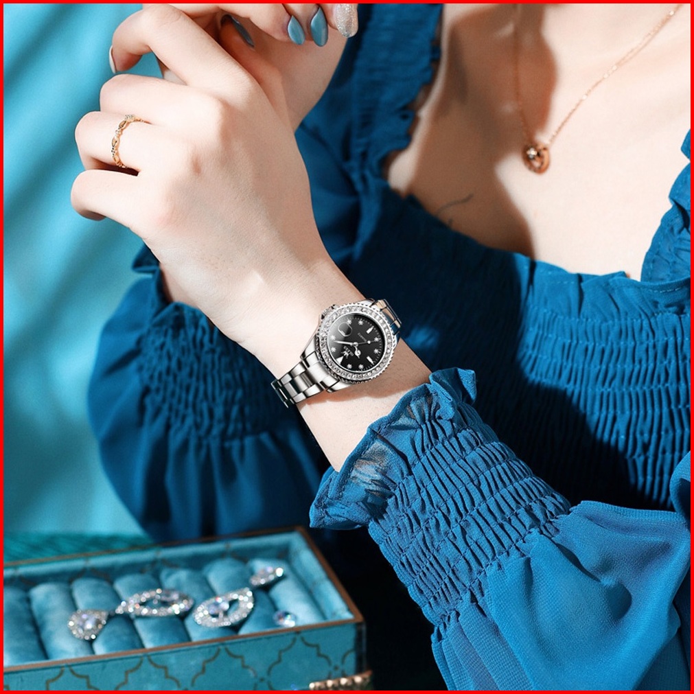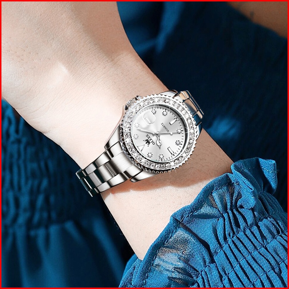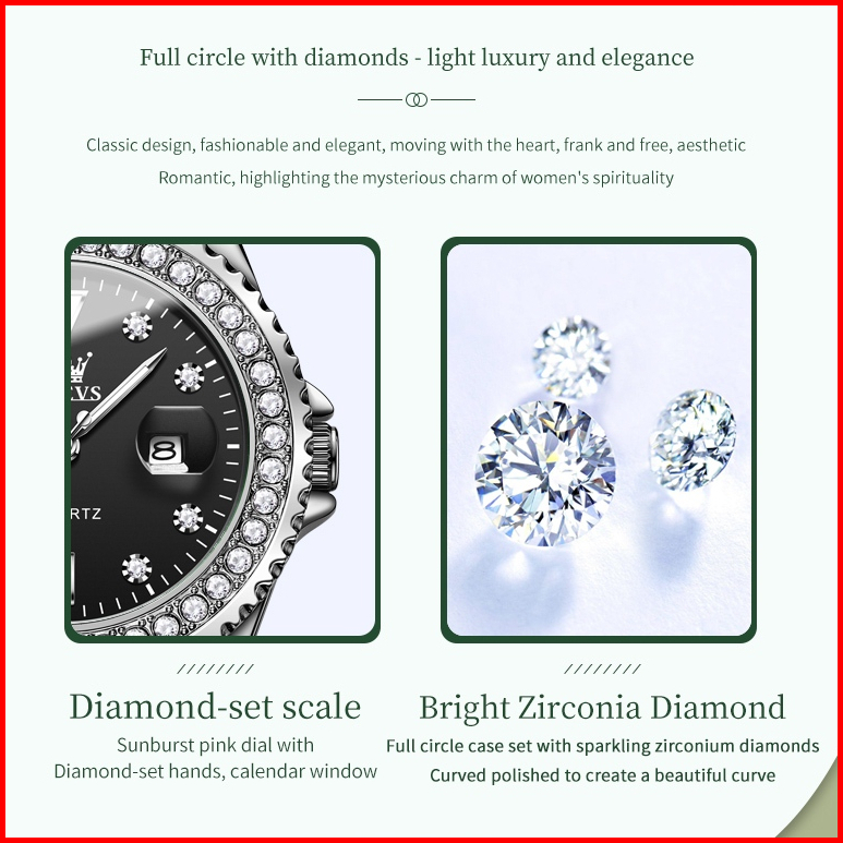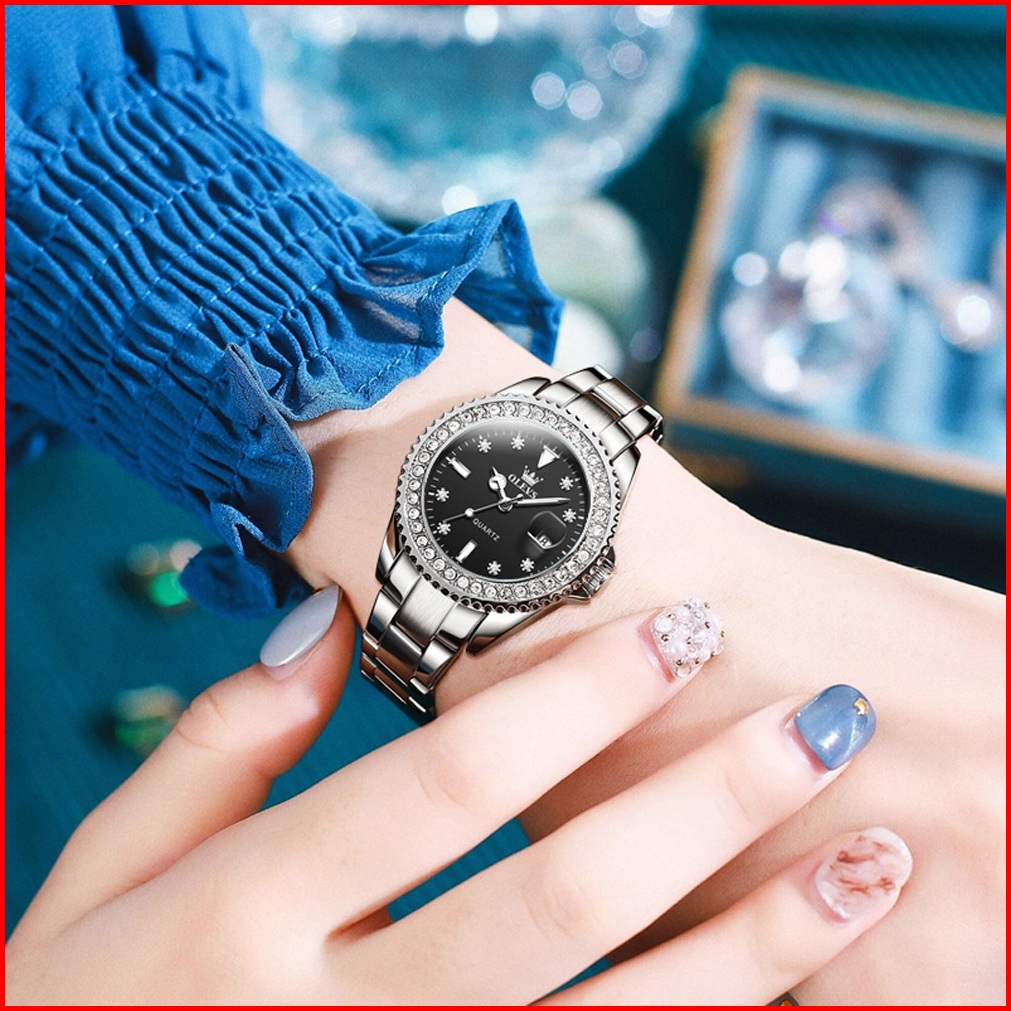 Olevs Jam Tangan Wanita Anti Air Original Stainless Steel Cewek Luminous Kalender Analog Women Watch Model 9945