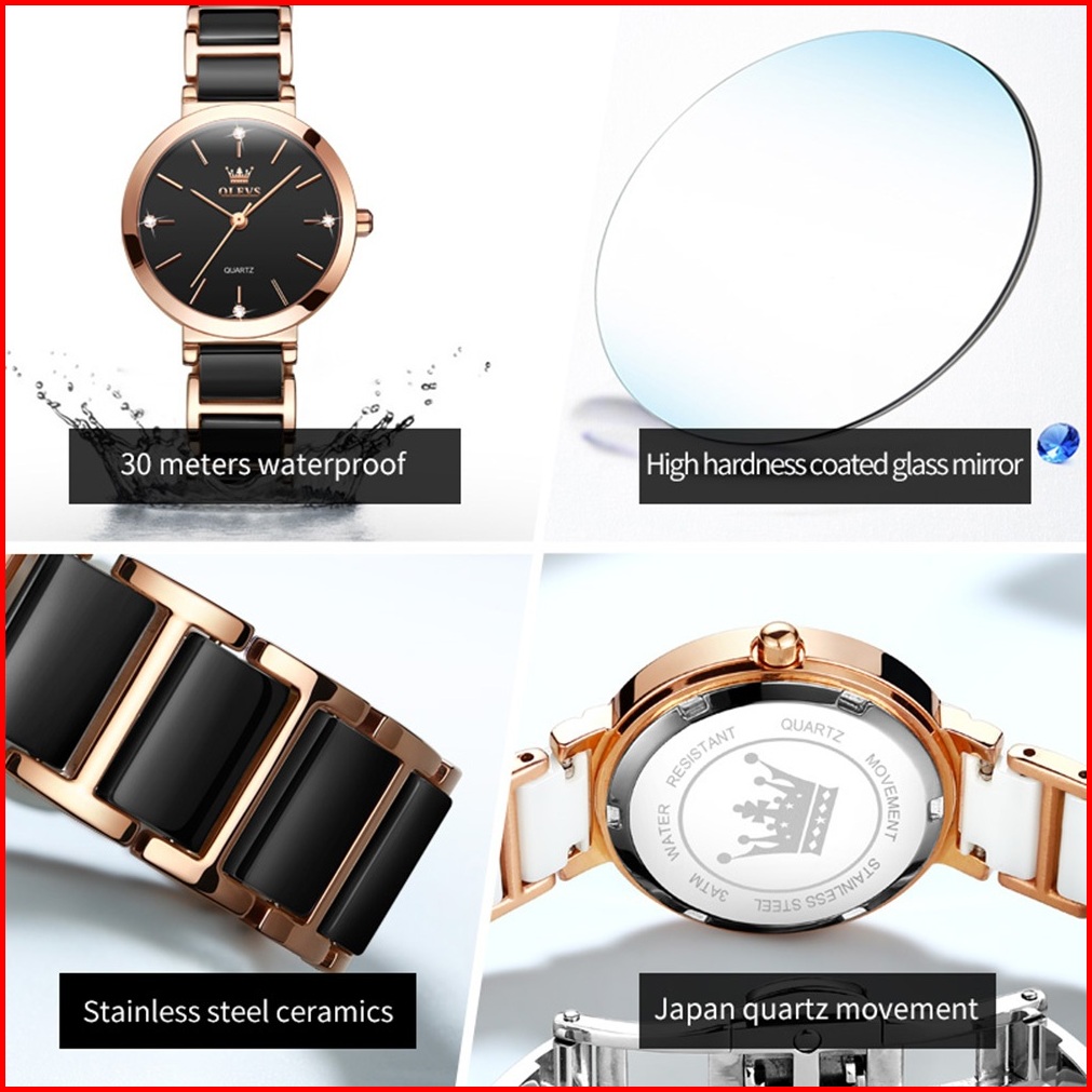 Olevs Jam Tangan Wanita Original Anti Air Tahan Analog Fashion Terbaru Keramik Watch Women