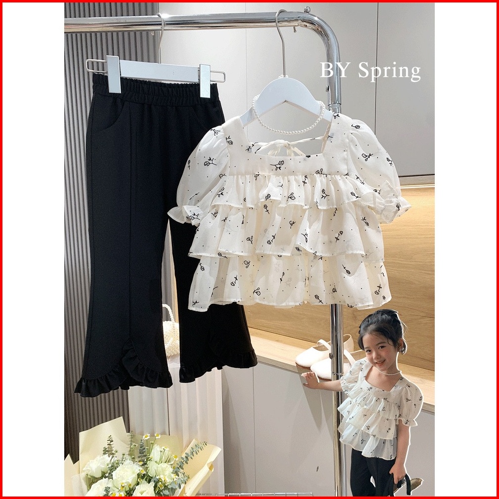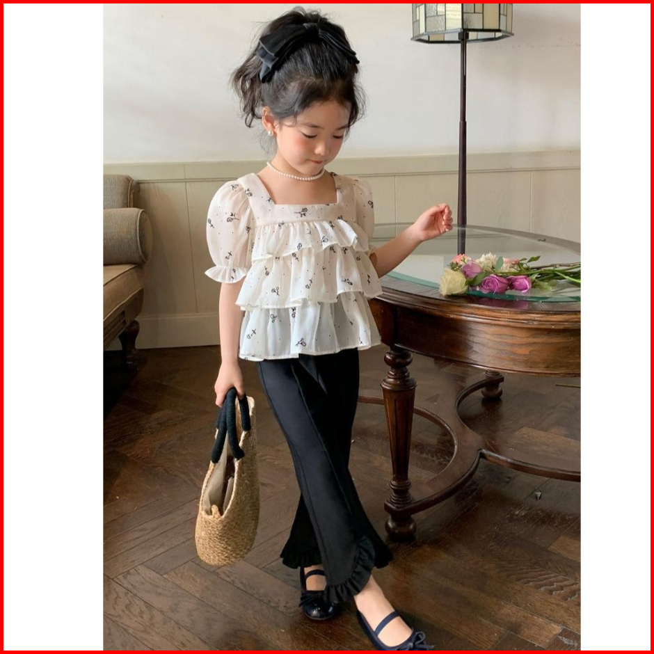 Kidsfo-101 Setelan Set Anak Perempuan Blouse Shiffon Layer Celana Panjang Kulot